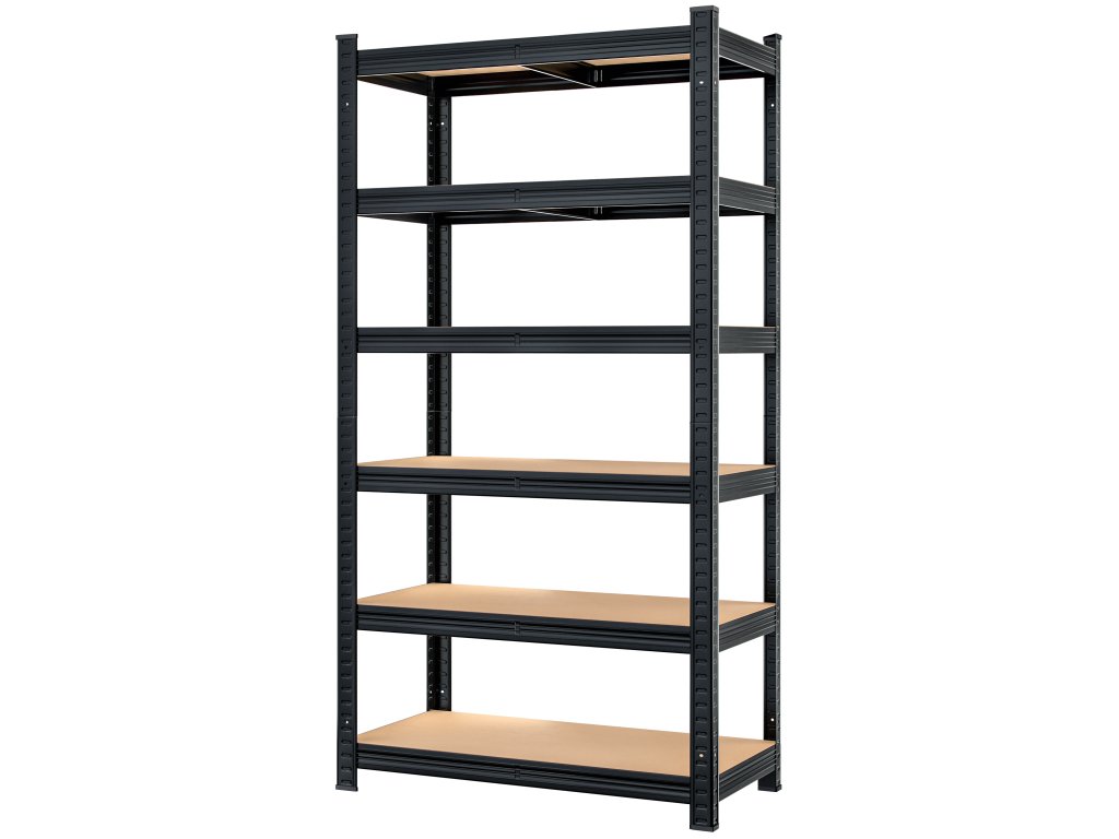 Regál je vyrobený z kvalitného kovového rámu s práškovým lakovaním, ktoré zabezpečuje trvácnosť a odolnosť voči opotrebovaniu. Každá z 6 políc je vyrobená z pevného MDF materiálu a je samostatne výškovo nastaviteľná. Polica unesie až 175 kg pri rovnomerne rozloženej záťaži, vďaka čomu zvládne aj ťažký materiál či skladové zásoby.