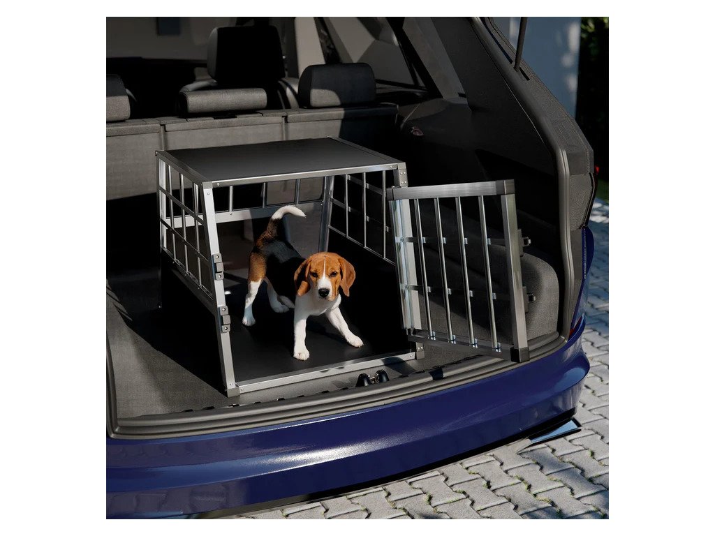 Box na bezpečnú prepravu psov M. S hliníkovým prepravným boxom pre psy M môžete prepravovať malé psy pohodlne a bezpečne. Uložte box do kufra alebo ho pripnite na zadné sedadlo auta.