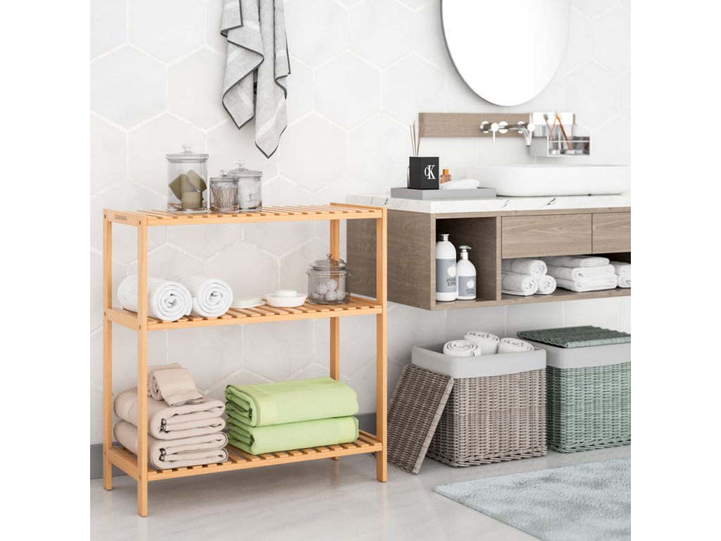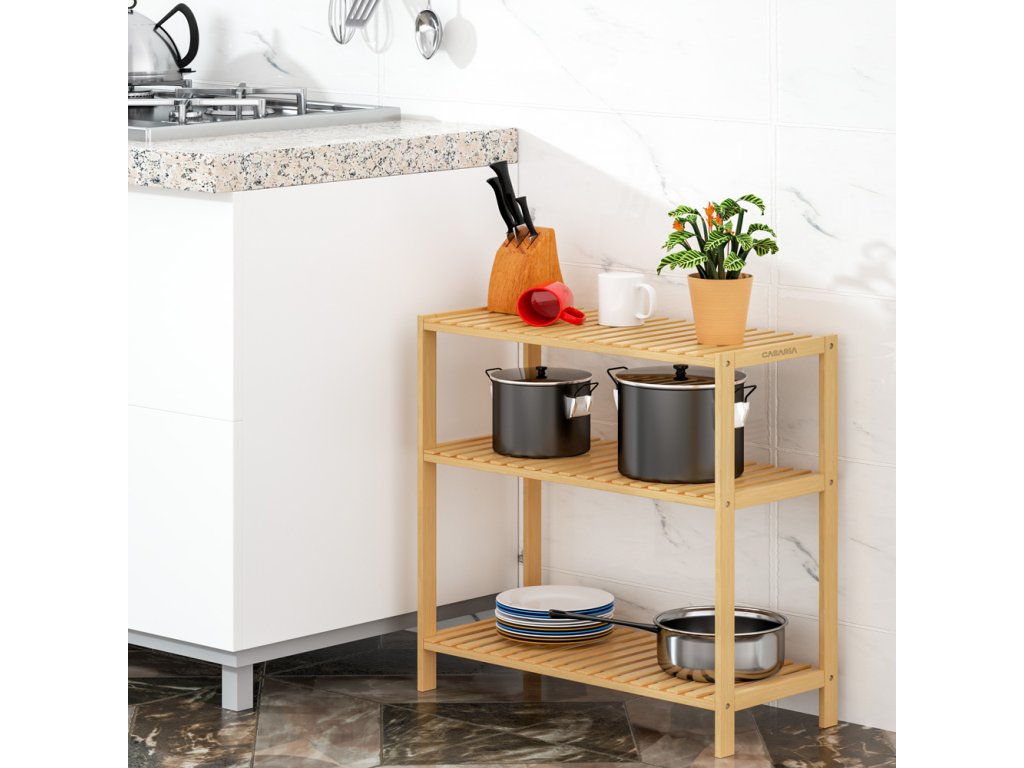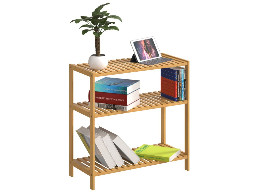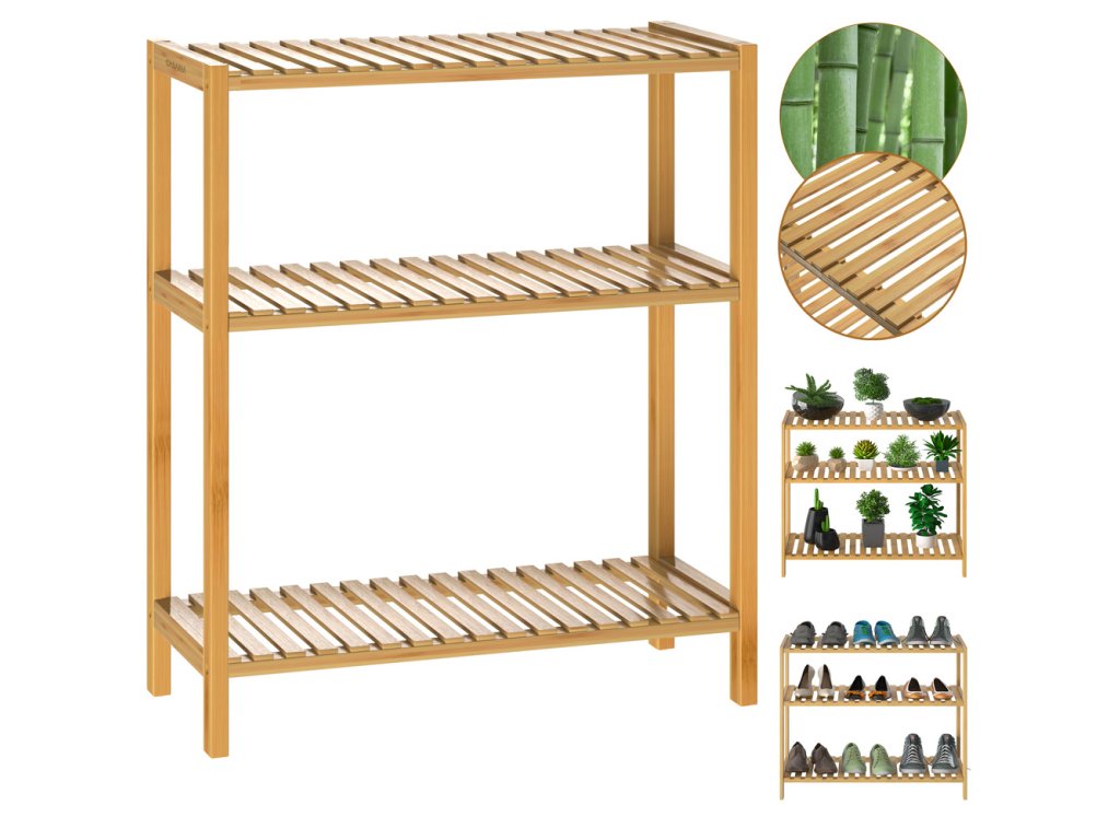 Polica môže byť použitá v kúpeľni, ako polica na topánky, polica na knihy, polica v kuchyni a oveľa viac. Robustná polica je vyrobená z prírodného a ekologického bambusu, a je možné ju zaťažiť až do 30 kg. Každá odkladacia plocha má nosnosť až 10 kg. Vďaka tejto vysokej nosnosti sa na ňu dajú bez problémov umiestniť aj napríklad knihy. Táto polica je pokrytá bezfarebným lakom.