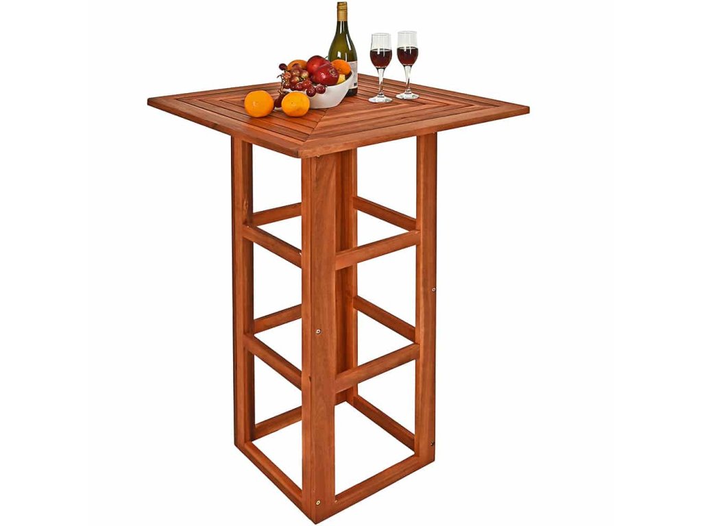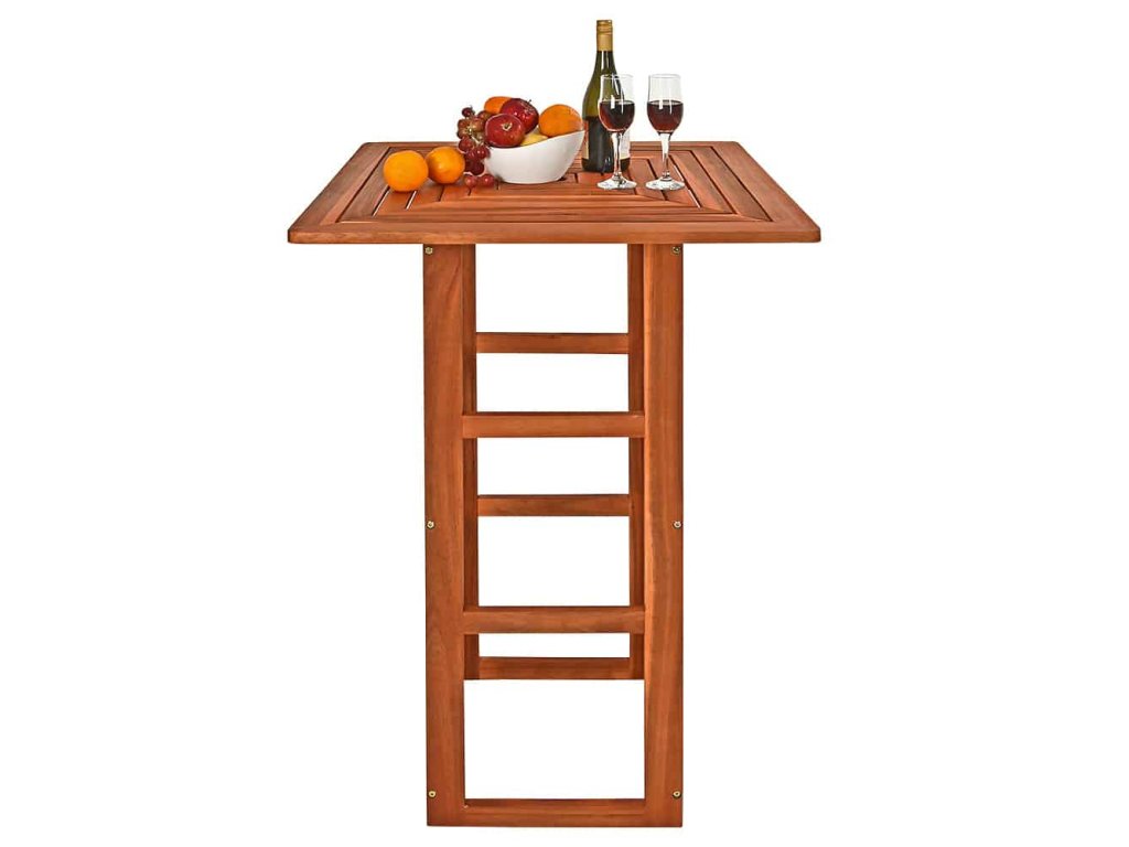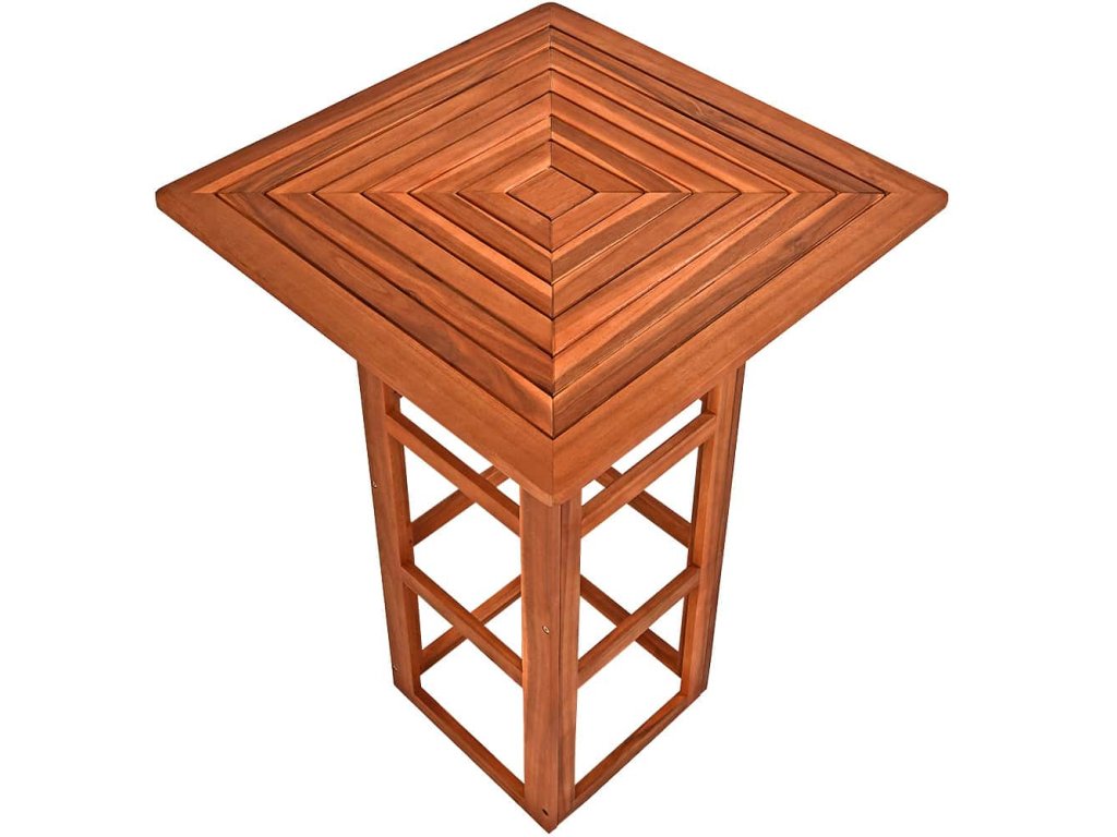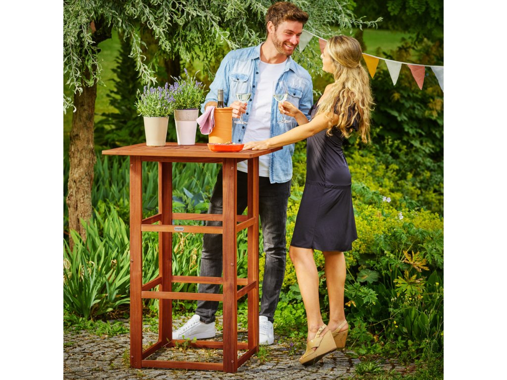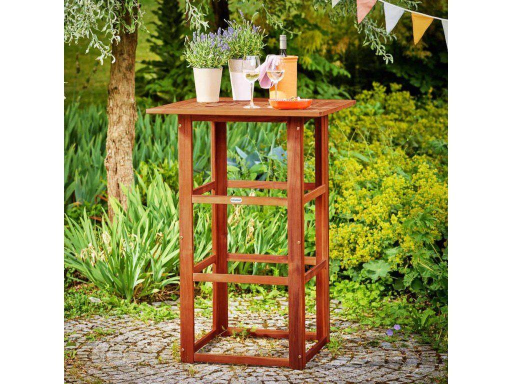 Barový stôl, vyrobený z kvalitného agátového dreva, disponuje štvorcovou doskou s rozmermi 75 x 75 cm. Rám stola pozostáva zo stabilného štvorcového podstavca. Tento stôl je skvelou voľbou na narodeninové oslavy, svadby a iné významné udalosti. Pre zachovanie intenzívnej farby a dlhej životnosti odporúčame pravidelne ošetrovať drevo špeciálnym olejom na záhradný nábytok.