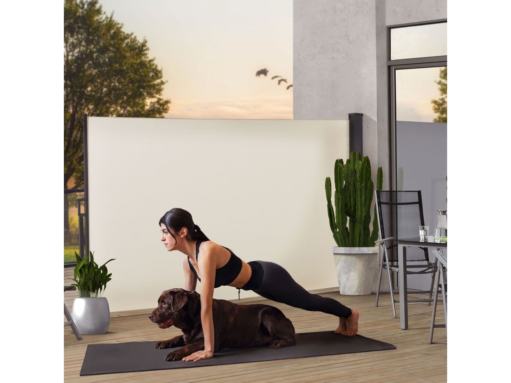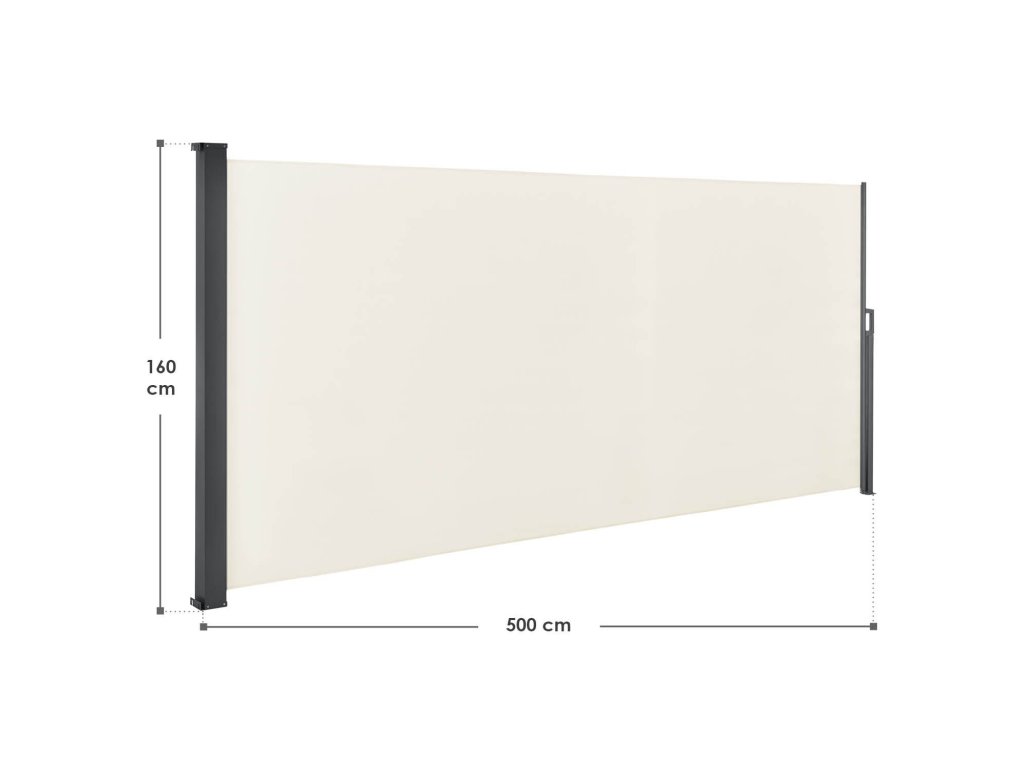 Pretože je bočná markíza zvinutá v kazete, môžete látku jednoducho vytiahnuť na vami zvolenú dĺžku. Máte možnosť prispôsobiť svoju markízu svojim individuálnym potrebám, aby bola vaša terasa alebo záhrada chránená pred slnkom a vetrom. Celkovo má moderná priečka výšku 1,60 m a maximálnu dĺžku 5 m.