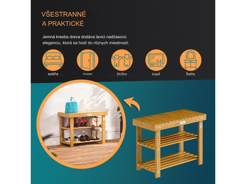 Lavica na topánky 104x30x48 cm - prírodná