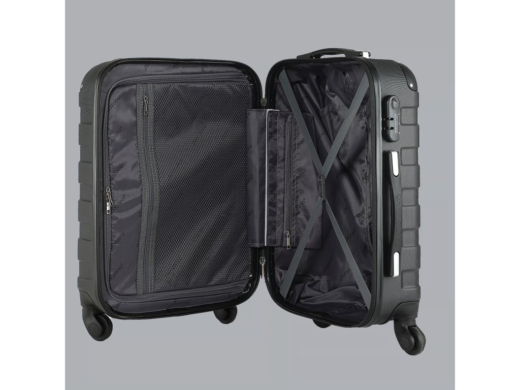 Škrupina kufra je vyrobená z ABS plastu, ktorý spoľahlivo chráni pred nárazmi a mechanickým opotrebením. Rohová ochrana dodáva batožine lepšiu stabilitu a dlhšiu životnosť. Zipsy sú orientované smerom dovnútra, čo prispieva k elegantnému vzhľadu a znižuje riziko poškodenia zubov zipsu pri manipulácii.