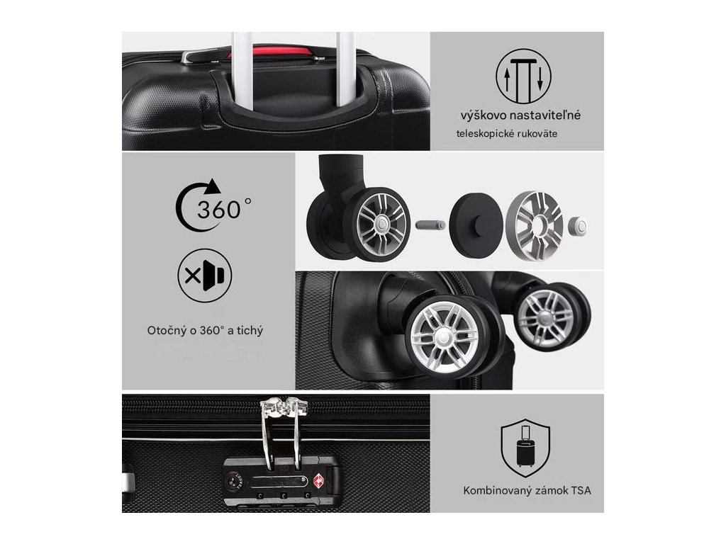 Set cestovných kufrov 4-dielny - čierny