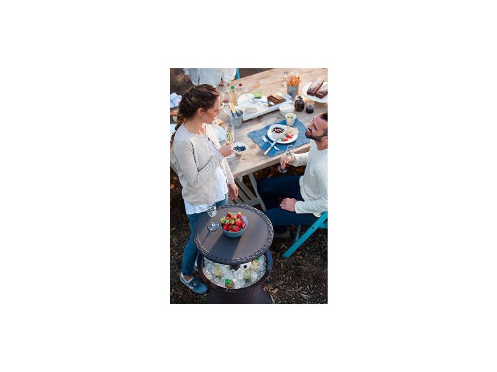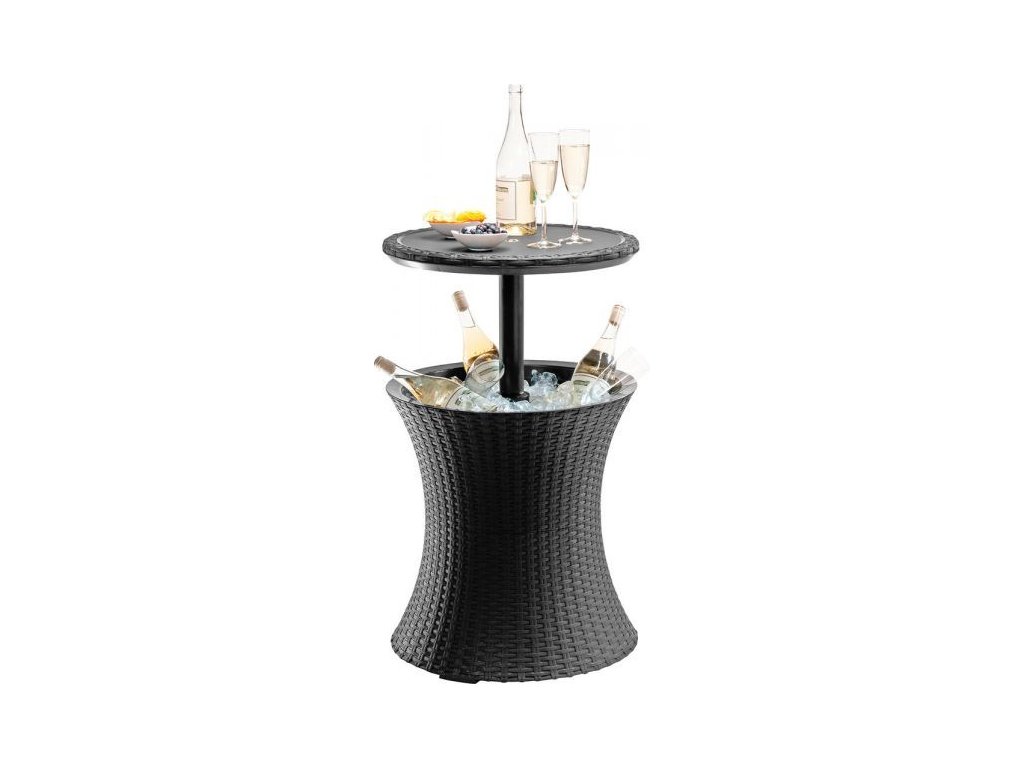 Multifunkčný záhradný bar, ktorý v zloženom stave slúži ako praktický stôl a po rozvinutí môže slúžiť ako klasický bar s boxom pre chladenie nápojov. Elegantný dizajn, povrch v imitácii ratanu a funkčnosť. Veľmi užitočné riešenie pri organizovaní záhradných párty s priateľmi a rodinou.
