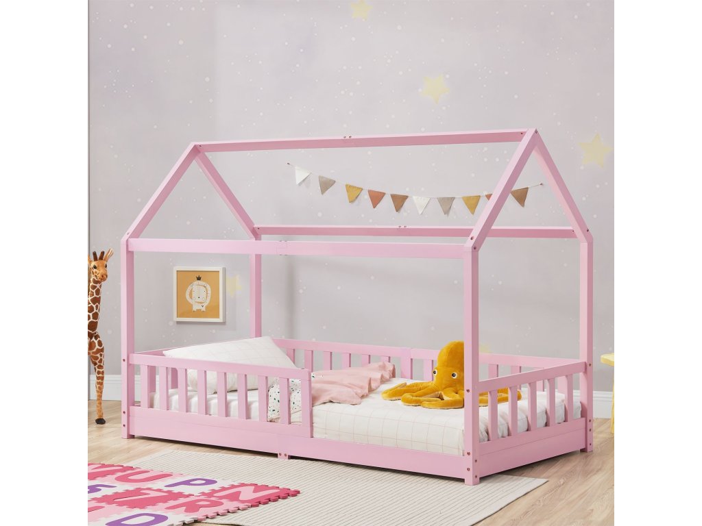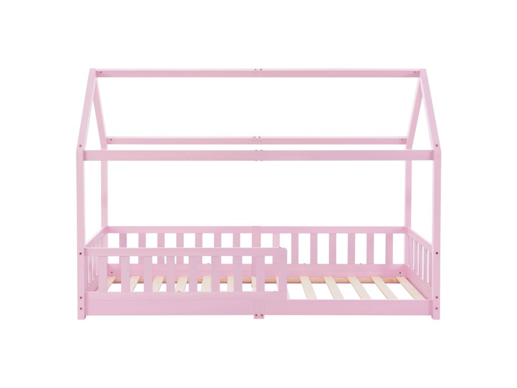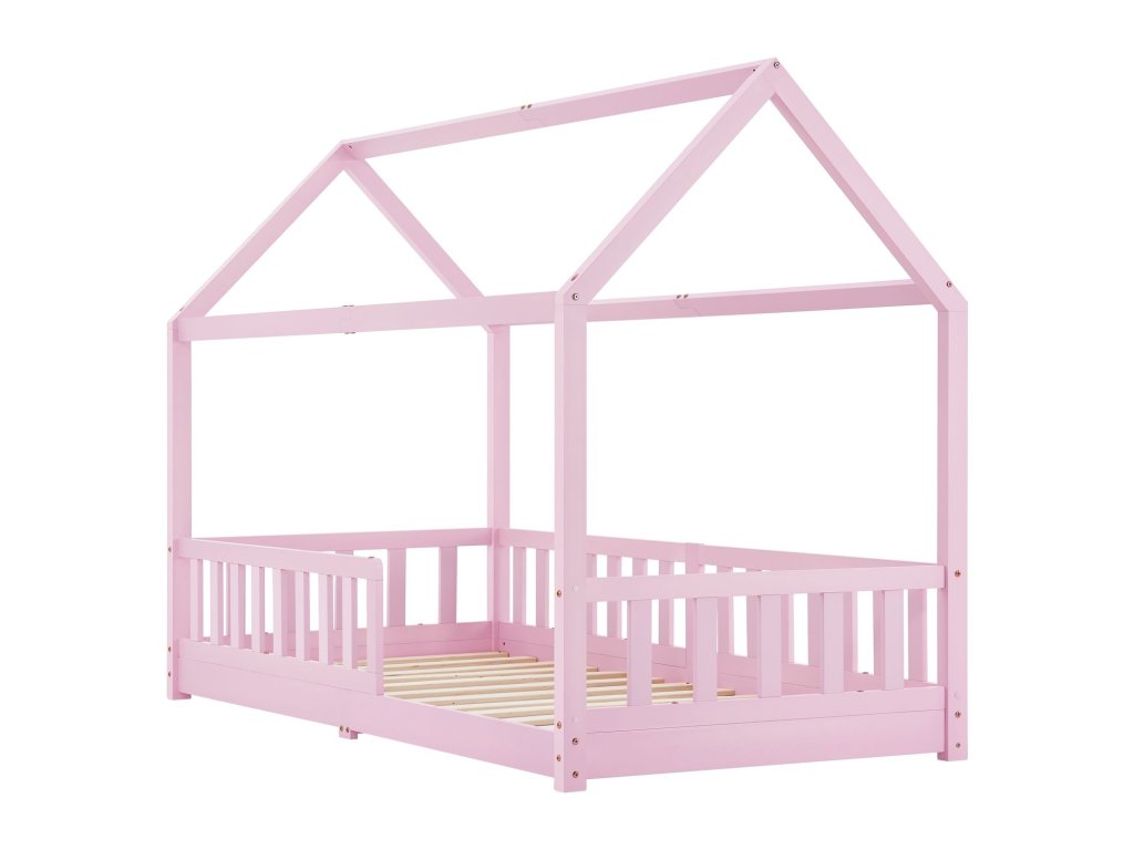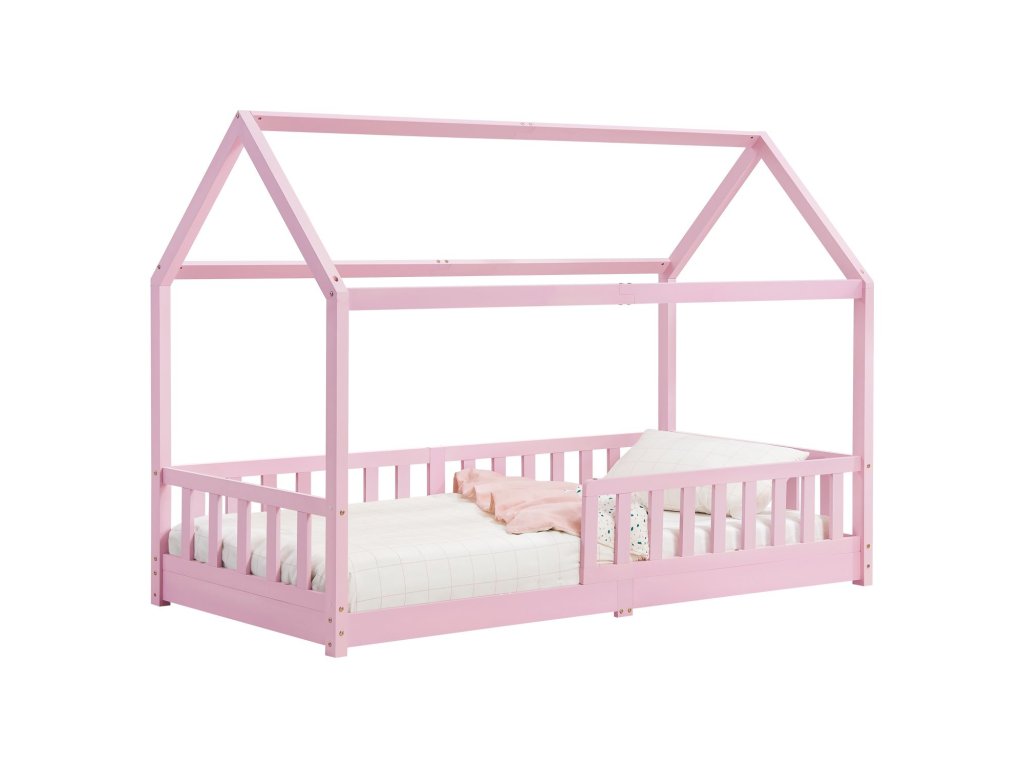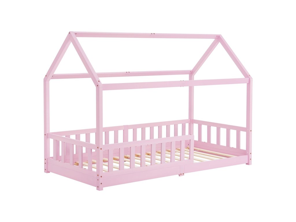 Moderná detská posteľ s ochranou proti pádu, lamelovým roštom a strieškou je ideálna pre dievčatá od 3 do 10 rokov s plochou na ležanie 90 x 200 cm. Posteľ ako útulné miesto na spanie a hranie skrášli každú detskú izbu. Vzhľad postele ako dom s otvorenou strechou, ponúka veľa možností. Dotvorte z tejto postele miesto na hranie pomocou dekorácii alebo strechy s baldachýnom. Brána ponúka bezpečnosť, ochranu a umožňuje vám vystúpiť na jednej strane. Pre dlhodobé používanie je drevená posteľ tou správnou voľbou vďaka masívnemu a ľahko udržiavateľnému borovicovému drevu.