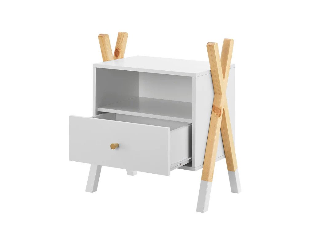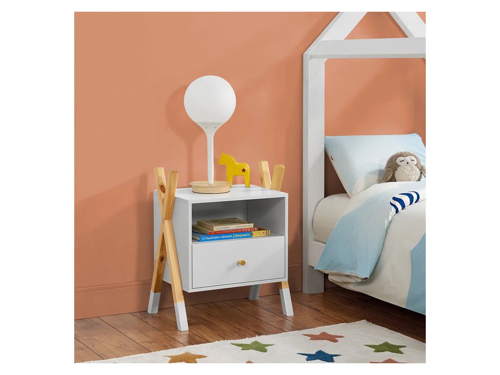 Nočný stolík ponúka deťom pohodlné miesto na odloženie lampy, obľúbenej knihy, budíka či drobností, ktoré chcú mať vždy po ruke. Vďaka nízkej výške je dostupný aj pre menšie deti a podporuje ich samostatnosť pri udržiavaní poriadku.
