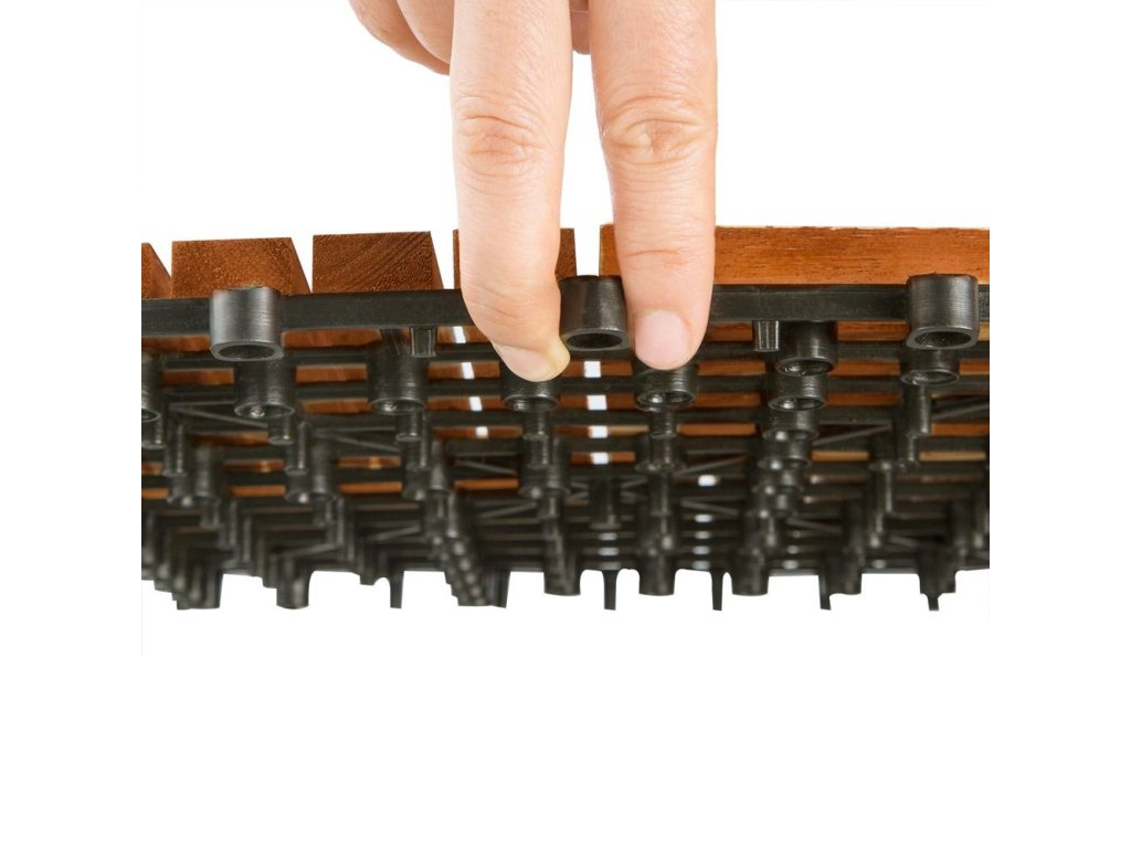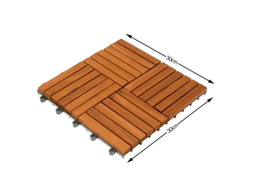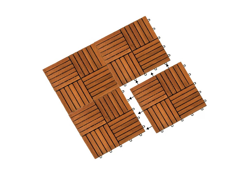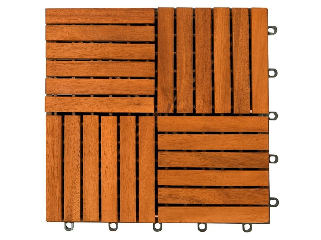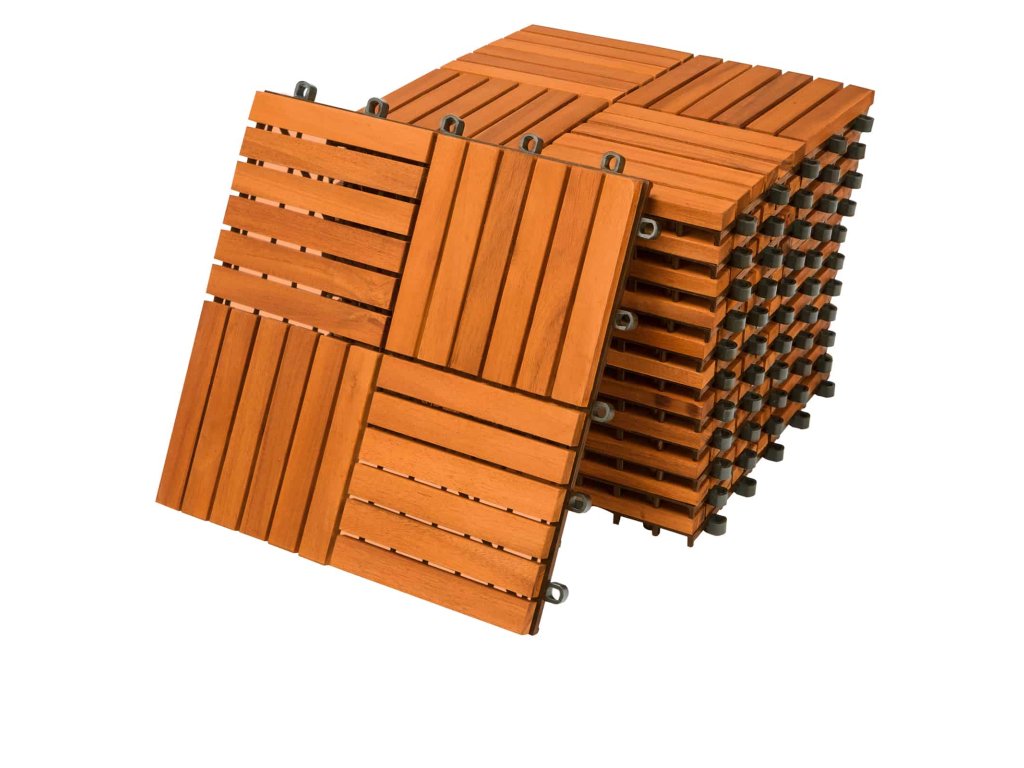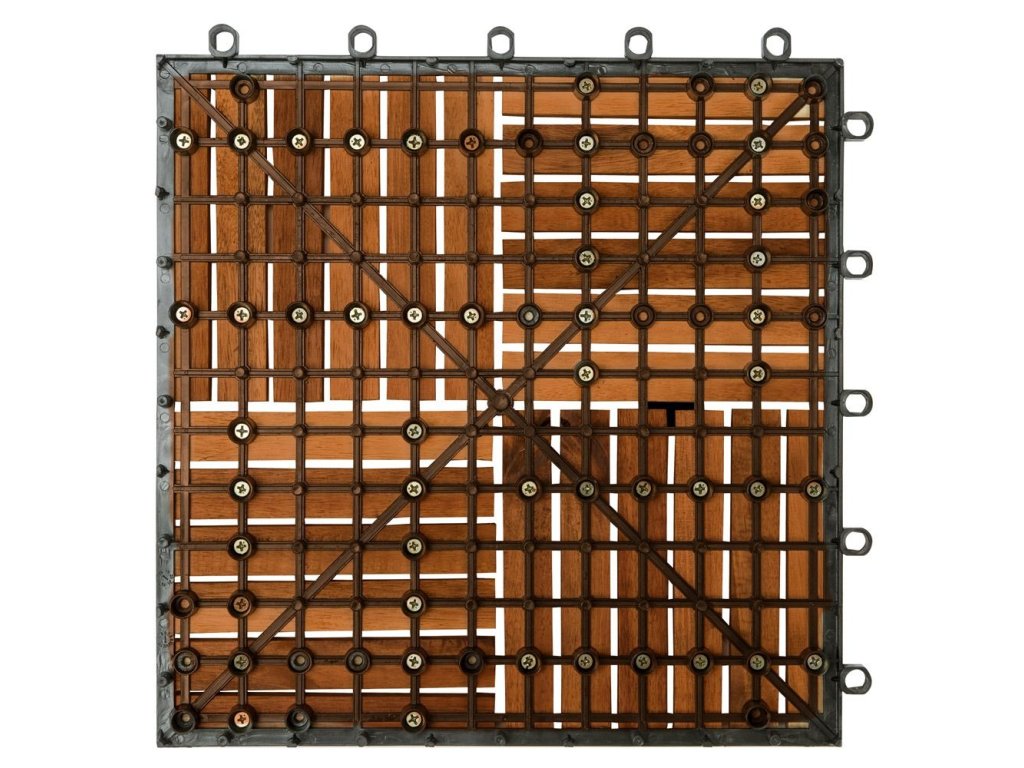Balkónové dlaždice z agátového dreva sú mimoriadne odolné voči poveternostným vplyvom, robustné a nenáročné na údržbu. Vďaka svojim vlastnostiam sú ideálne nielen na vonkajšie použitie, ale aj do interiérov, ako sú sauna či kúpeľňa. Dekoratívne vzory umožňujú kreatívne pokladanie na balkónoch, terasách, zimných záhradách či chodníkoch. Dlaždice sa jednoducho spájajú vďaka praktickému zásuvnému systému, ktorý zabezpečuje rýchlu a beznástrojovú montáž. Stabilný a jednotný povrch je možné ukladať v rôznych vzoroch a materiál sa dá jednoducho prispôsobiť strihaním. Vylepšený podklad drevených obkladov predchádza ich lámaniu a plastový drenážny systém zabezpečuje spoľahlivý odvod vody, čím zvyšuje ich životnosť. Základňa je vyrobená z odolného a pružného plastu, ktorý zabraňuje priamemu kontaktu dreva so zemou.