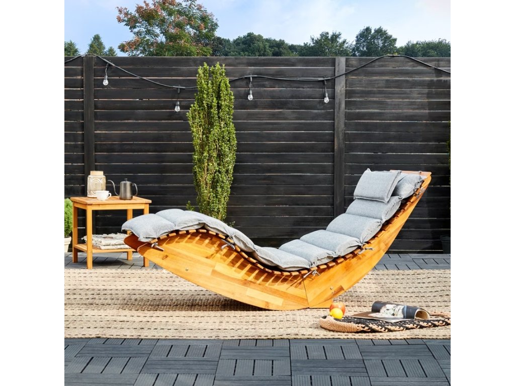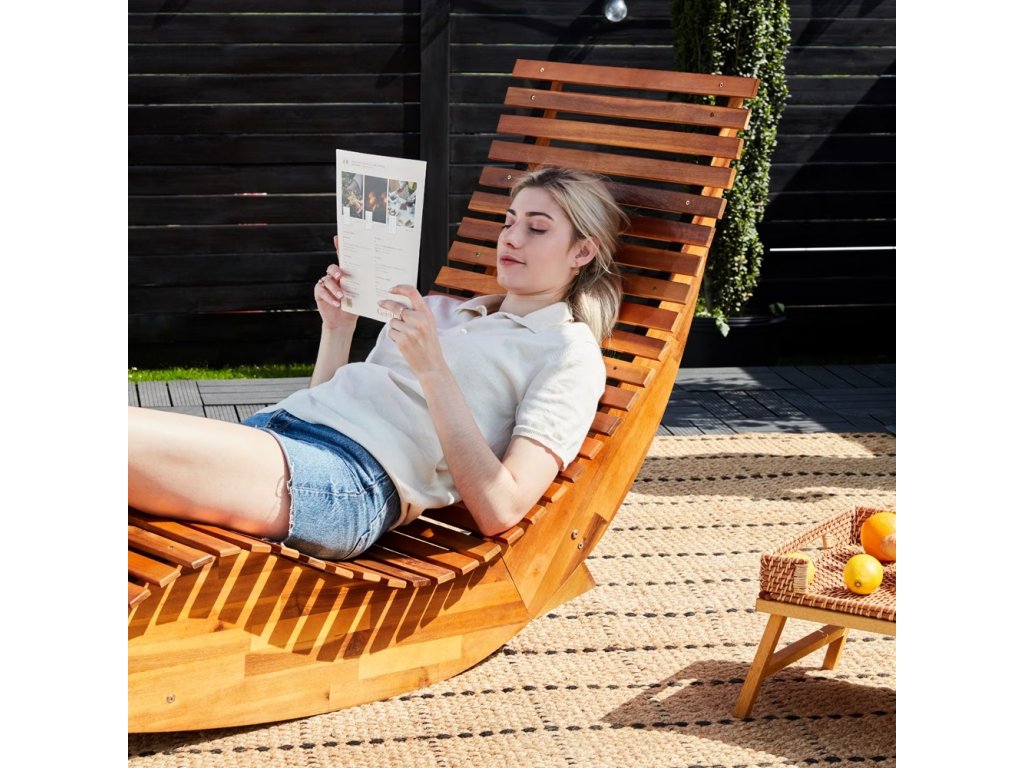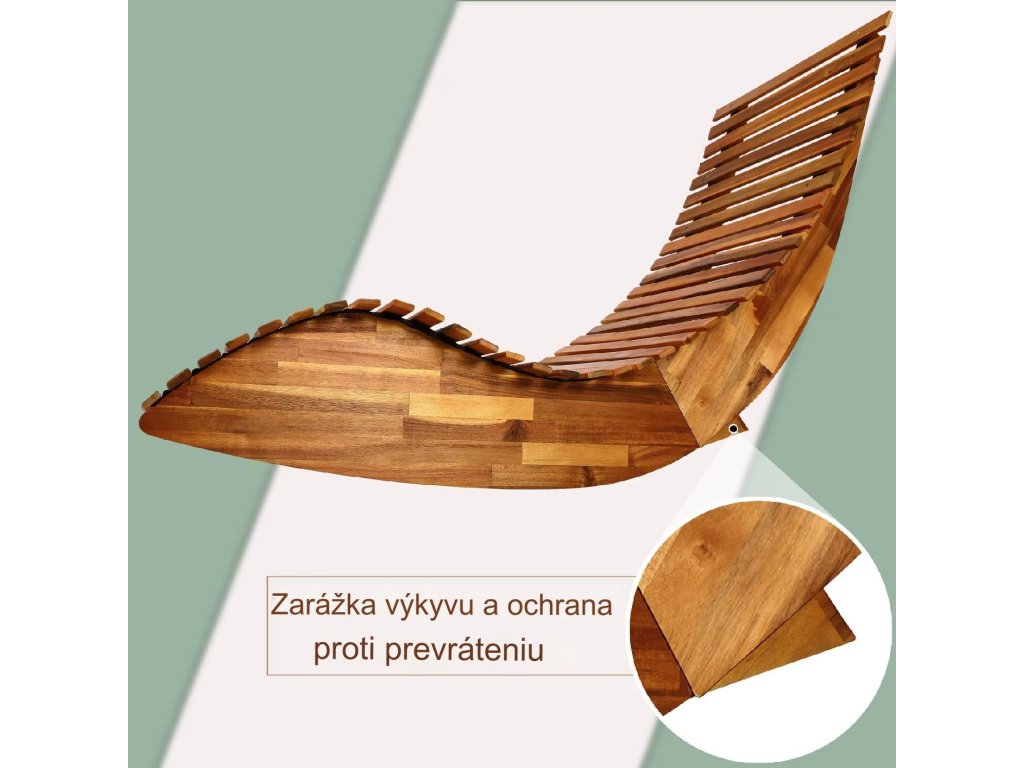 Robustné lehátko z agátového dreva sa vyznačuje ergonomickým tvarom a jedinečnou hojdacou funkciou. Oddýchnite si na lehátku pri bazéne, na terase alebo na balkóne. Lehátko je vhodné do exteriéru aj interiéru je odolné voči poveternostným vplyvom a stane sa výborným spoločníkom počas letných dní. Lehátko sa dá pohodlne zložiť pre ľahké skladovanie.