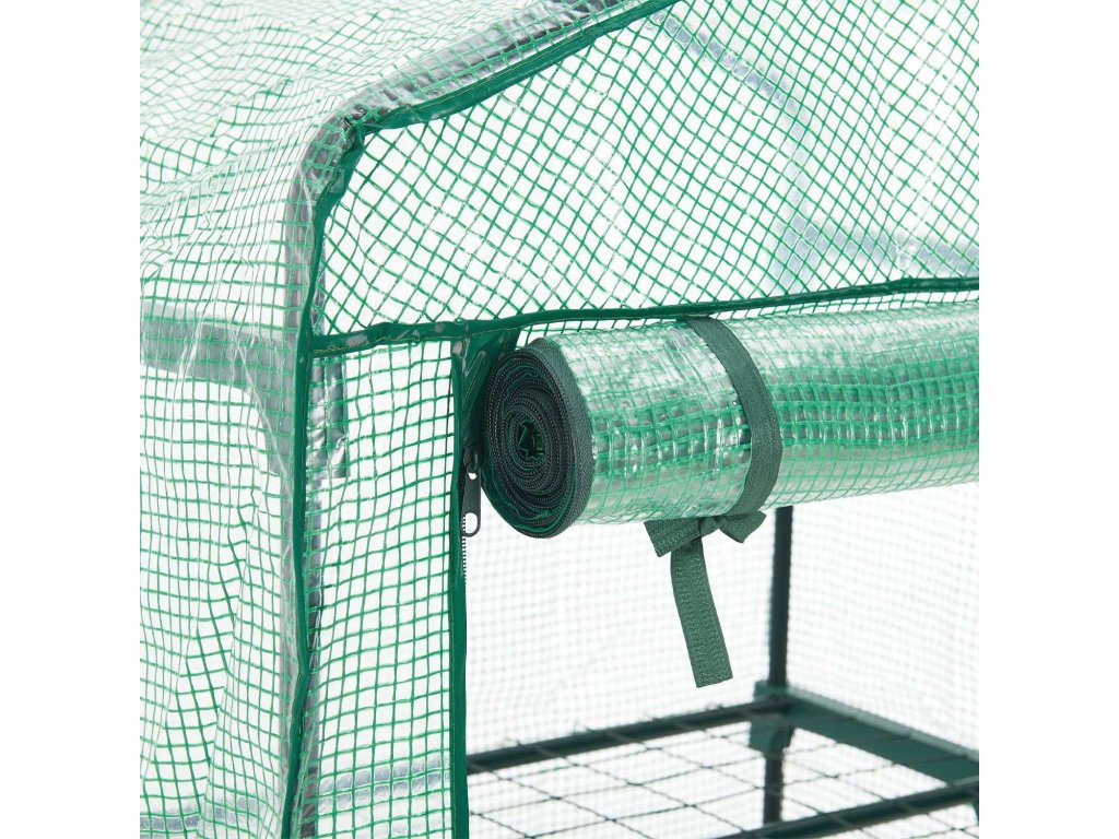 Fóliovník je obzvlášť kompaktný a ľahký, ideálny na pestovanie ovocia a zeleniny alebo na prezimovanie malých rastlín. Ochranná fólia vyrobená z polyetylénu spoľahlivo chráni pred škodcami a negatívnymi poveternostnými vplyvmi. Zároveň umožňuje nerušený prienik slnečných lúčov a vytvára tak ideálnu mikroklímu pre rast rastlín. S rozmermi len 66 x 48 cm sa hodí aj na malé balkóny, terasy alebo do akejkoľvek záhrady. Predná strana sa dá rozopnúť zipsom a úplne zrolovať. Fóliovník má konštrukciu z práškovo lakovaných rúr. Tieto sú extrémne ľahké a zaisťujú stabilný stojan. Montáž a demontáž je rýchla a jednoduchá vďaka praktickému zásuvnému systému.