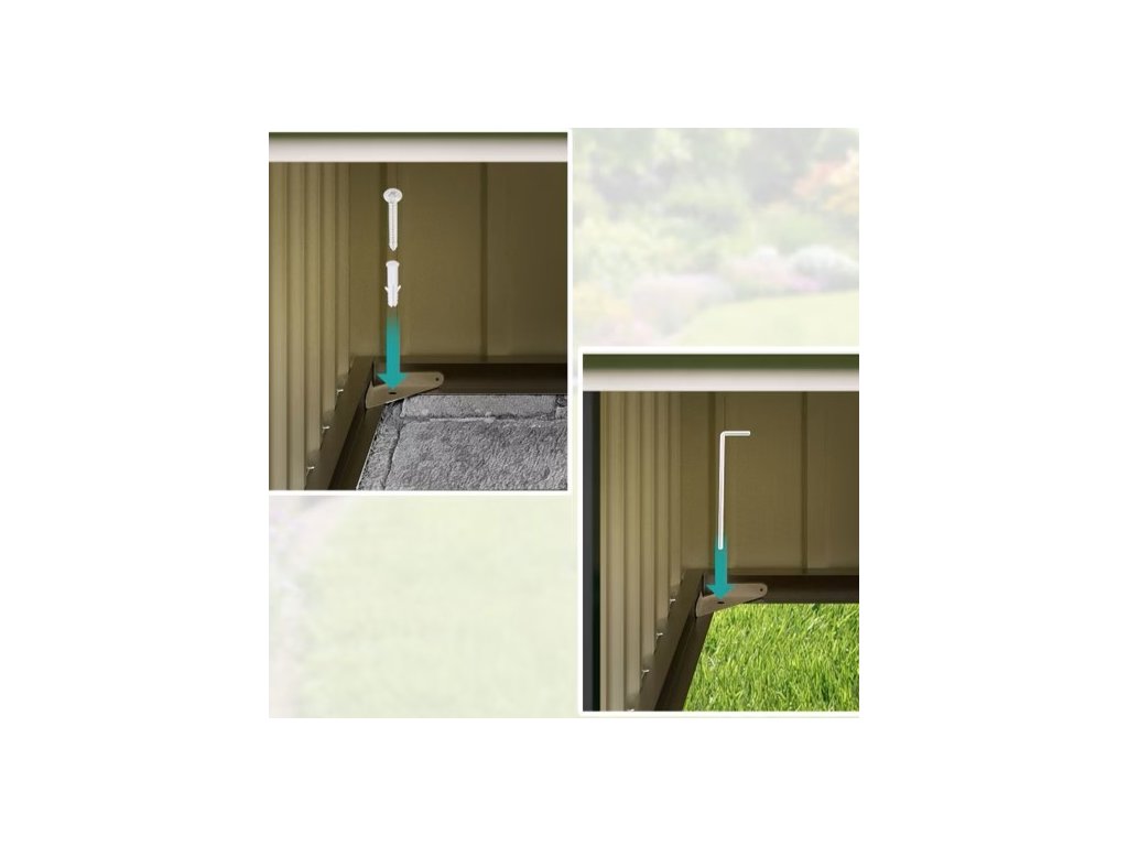 - Stabilná konštrukcia vďaka dodatočným podlahovým lištám, kovovým uhlom a 4 pevným zemným klincom