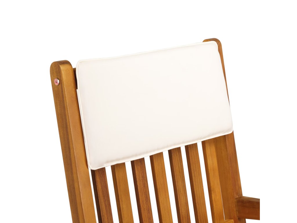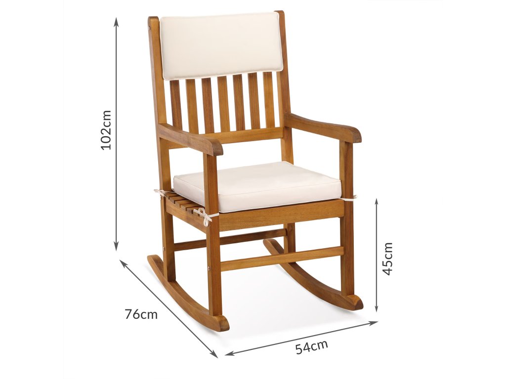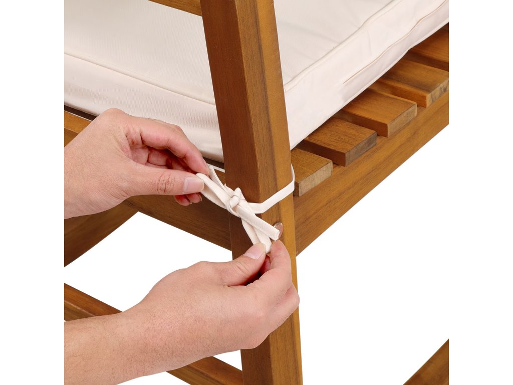 Prírodná krása teplých drevených odtieňov v spojení s jemnými, pohodlným podsedákom a chrbtovým vankúšom, vytvára útulnú atmosféru s rustikálnym nádychom. Či už ho umiestnite do záhrady, na terasu alebo do zimnej záhrady, jeho klasický dizajn sa dokonale prispôsobí akémukoľvek štýlu interiéru či exteriéru. Masívne akáciové drevo, starostlivo naolejované, zabezpečuje nielen vysokú odolnosť voči poveternostným podmienkam a korózii, ale aj dlhú životnosť. Ergonomicky tvarované operadlo, elegantne zaoblené podrúčky a extra mäkké vankúše poskytujú maximálny komfort pri sedení. Tradičné drevené nožičky pre hojdacie kreslá navyše zaručujú tichý a jemný pohyb. Jeho údržba je jednoduchá – stačí použiť vlhkú handričku. Ak chcete zachovať intenzívnu farbu a odolnosť dreva, odporúčame pravidelne používať špeciálny olej na záhradný nábytok.