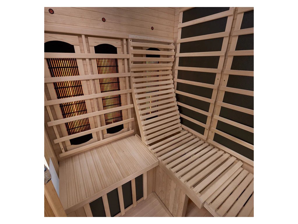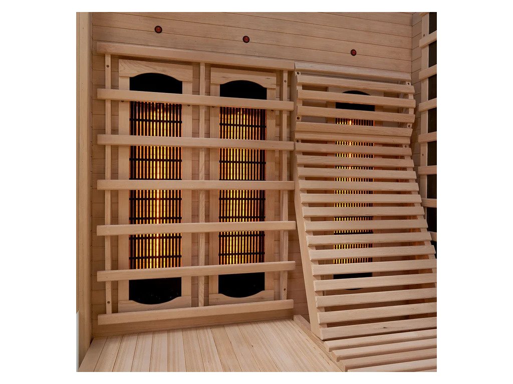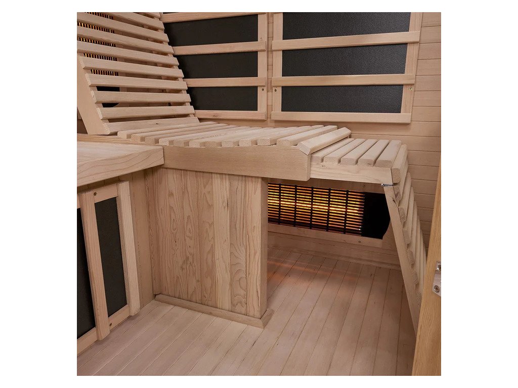 Infračervená sauna využíva 4 plnospektrálne žiariče pre intenzívnu hĺbkovú tepelnú terapiu a 3 plošné žiariče pre príjemné rovnomerné rozloženie tepla. Tepelný výkon 1880 W zabezpečuje rýchle nahriatie a efektívne využitie energie.