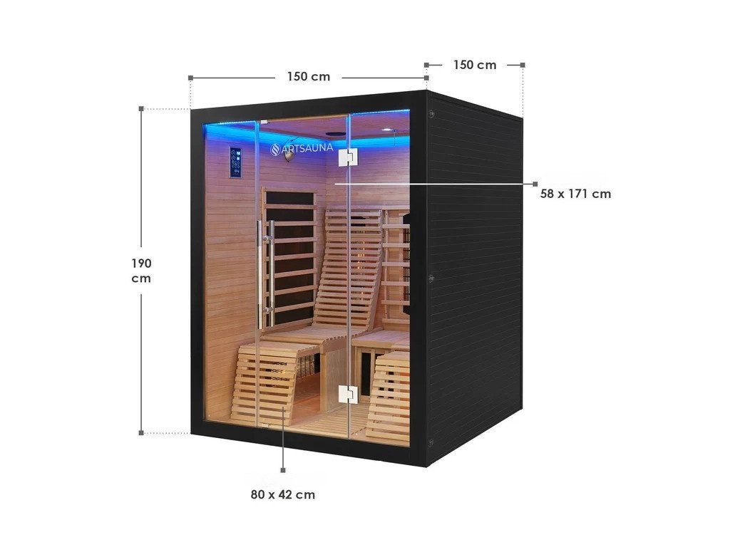 - Rozmer infračervenej sauny (ŠxHxV): 150 x 150 x 190 cm