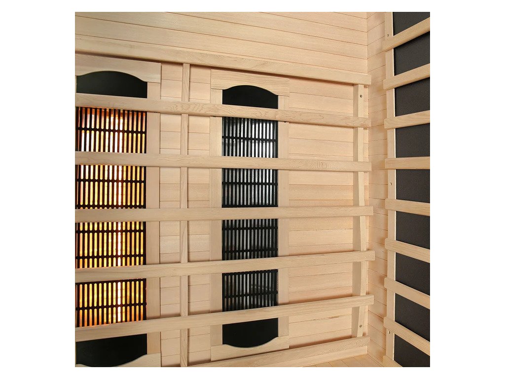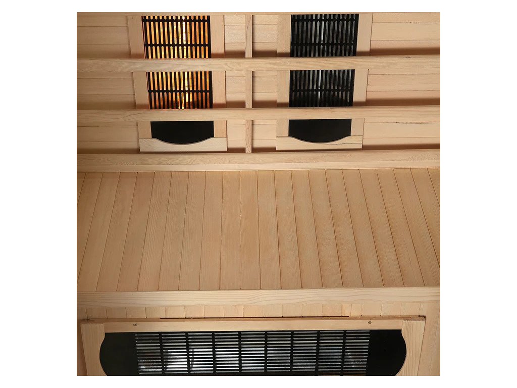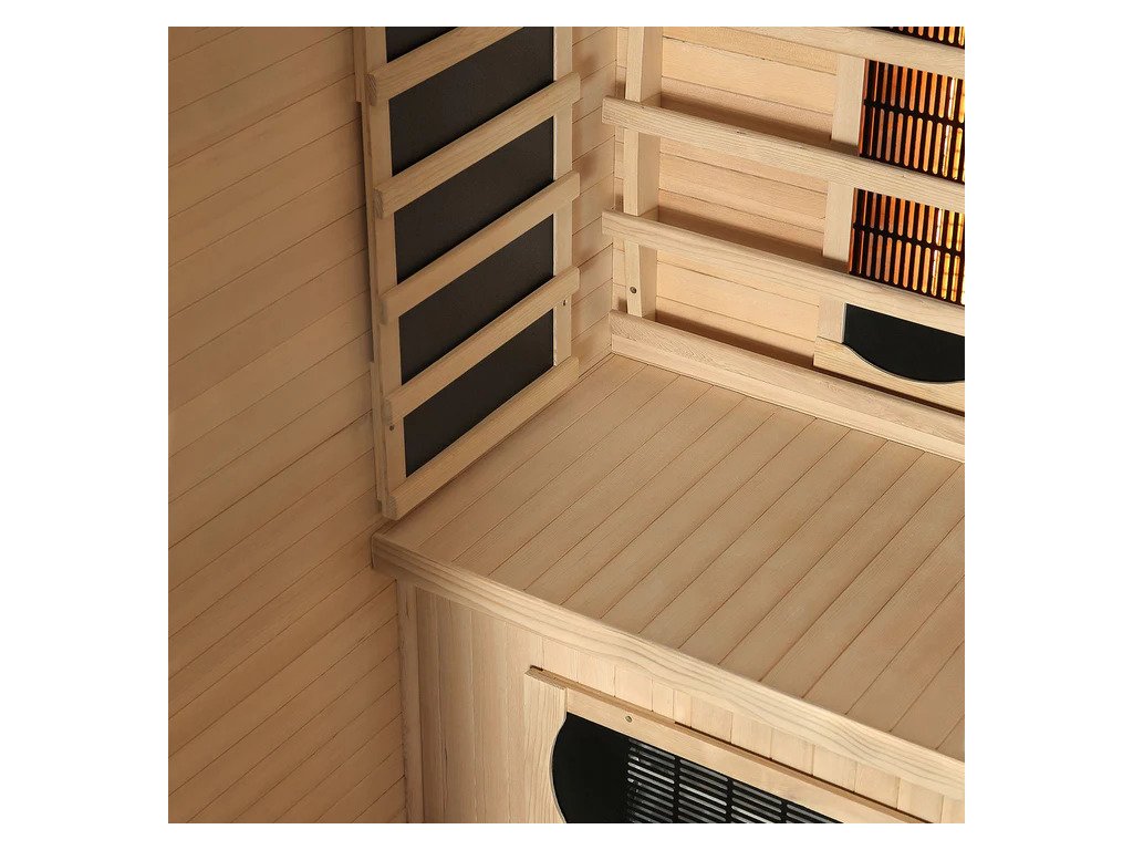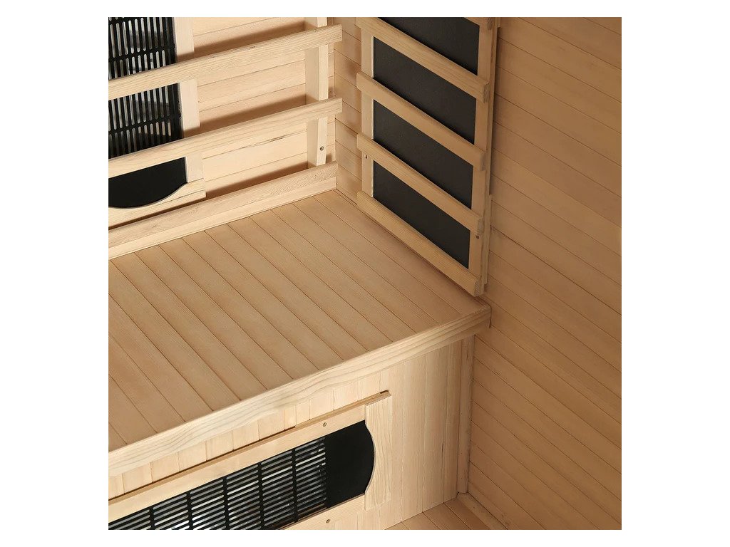 Infračervená sauna využíva kombináciu rôznych typov žiaričov vrátane plnospektrálneho, keramického a plošného. Vďaka tomu pôsobí intenzívne na chrbát, boky, nohy a lýtka a zároveň zabezpečuje príjemne rovnomerné teplo v celom vnútornom priestore.