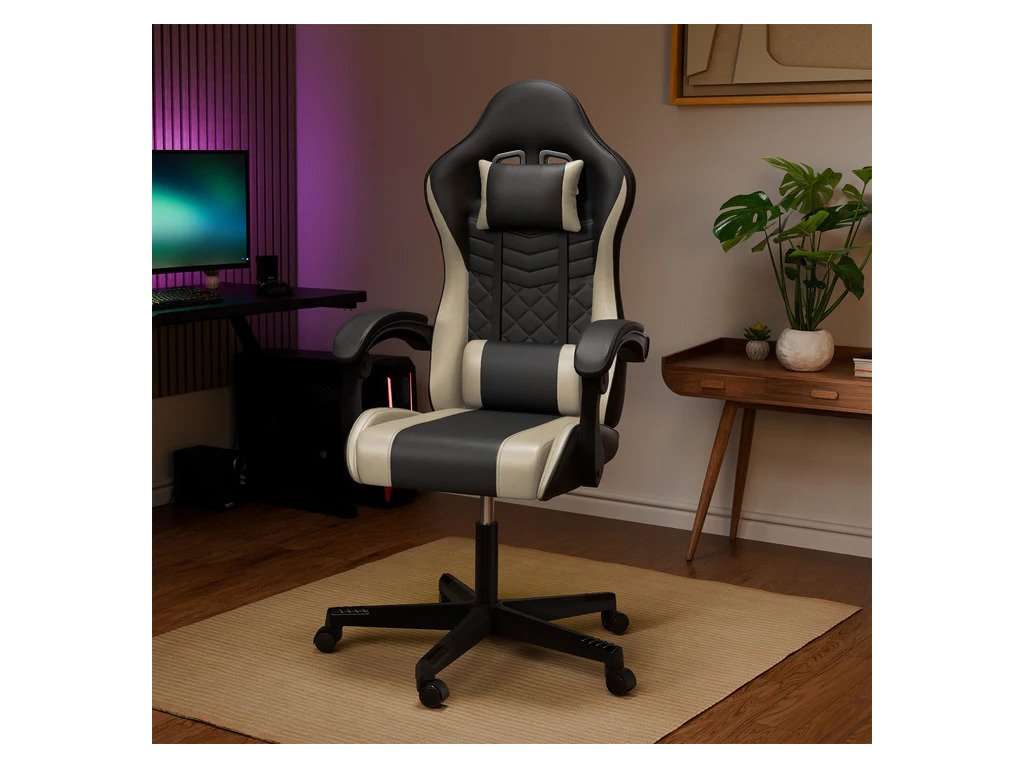 Táto kancelárska stolička ponúka ergonomické pohodlie, nastaviteľné operadlo s vankúšom na krk a chrbát a robustnú konštrukciu. Je výškovo nastaviteľná a má nosnosť až 120 kg. Povrch stoličky je potiahnutý ľahko udržiavateľnou umelou kožou, takže je ideálna do kancelárie alebo na hranie hier. Vďaka individuálne nastaviteľnému operadlu a optimálnej výške sedadla si stoličku nastavíte tak, aby ste si zabezpečili pohodlie a komfort pri dlhšom sedení. Nylonová základňa a vysoko kvalitné materiály poskytujú bezpečnú oporu aj pre väčších a ťažších používateľov. Na čistenie použite mäkkú, vlhkú handričku no nepoužívajte agresívne ani abrazívne čistiace prostriedky.Technické špecifikácie: