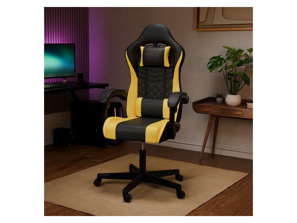 Táto kancelárska stolička ponúka ergonomické pohodlie, nastaviteľné operadlo s vankúšom na krk a chrbát a robustnú konštrukciu. Je výškovo nastaviteľná a má nosnosť až 120 kg. Povrch stoličky je potiahnutý ľahko udržiavateľnou umelou kožou, takže je ideálna do kancelárie alebo na hranie hier. Vďaka individuálne nastaviteľnému operadlu a optimálnej výške sedadla si stoličku nastavíte tak, aby ste si zabezpečili pohodlie a komfort pri dlhšom sedení. Nylonová základňa a vysoko kvalitné materiály poskytujú bezpečnú oporu aj pre väčších a ťažších používateľov. Na čistenie použite mäkkú, vlhkú handričku no nepoužívajte agresívne ani abrazívne čistiace prostriedky.Technické špecifikácie: