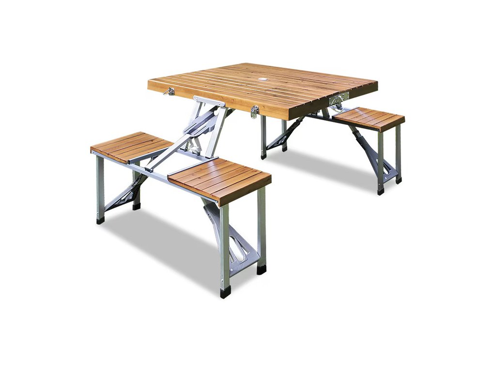 Obľúbené kempingové sety ponúkajú praktické riešenie v podobe kombinácie stola a stoličiek. Set kempingový stôl a stoličky skladacie je vhodný na rýchle stolovanie aj oddych počas výletov. Vďaka skladaciemu mechanizmu zaberá minimum miesta a manipulácia je jednoduchá aj pri častom prenášaní. Kempingový nábytok je ideálny nielen do prírody, ale aj na terasu či do záhrady.