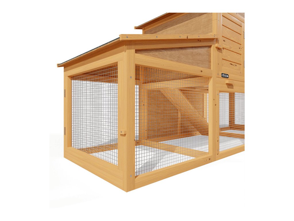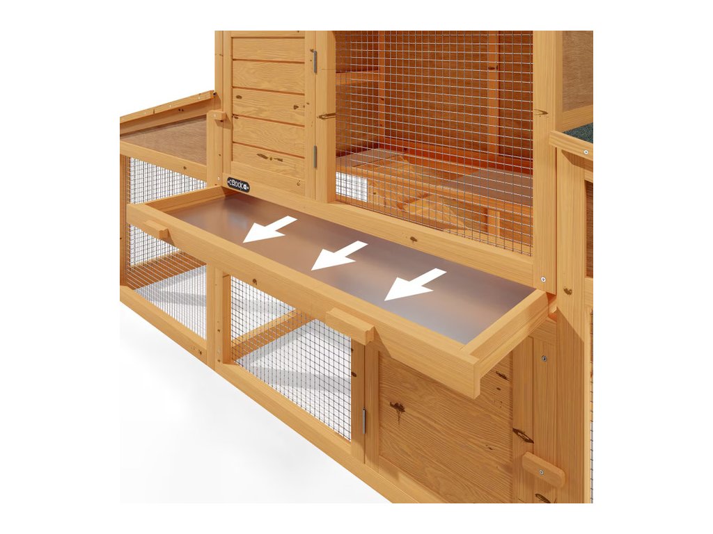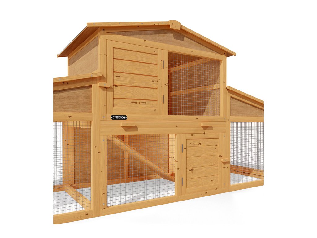 Spodne poschodie je vybavená 8 priehradovými oknami, 1 prednými dverami a 2 bočnými dverami. Do horného poschodia vedie rebrík s ďalšími prednými dverami. Celková dĺžka je 210 cm (rozmery okraja strechy). Zásuvku je možné na čistenie vytiahnuť.