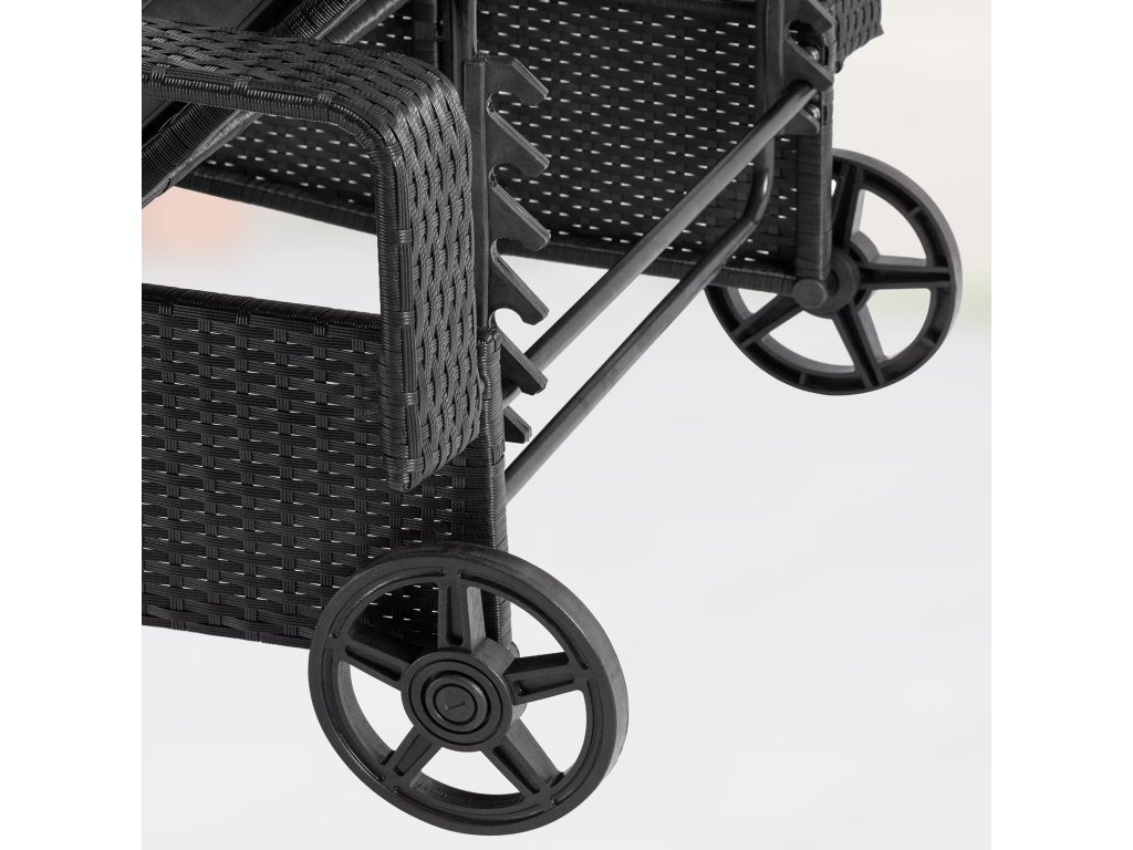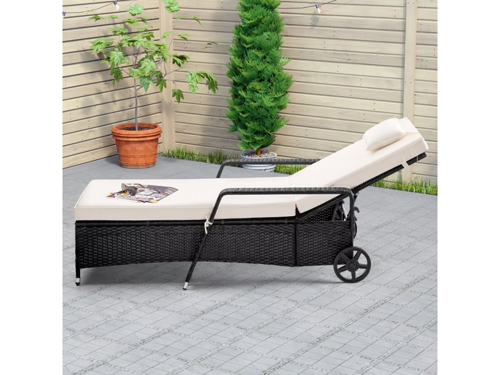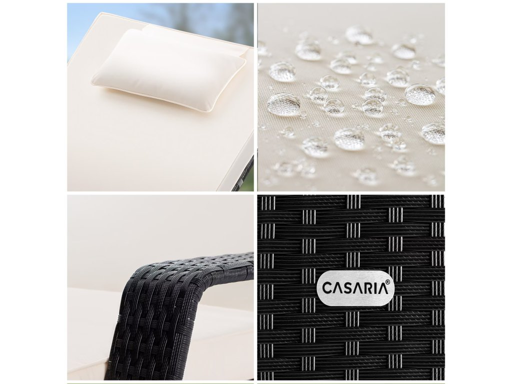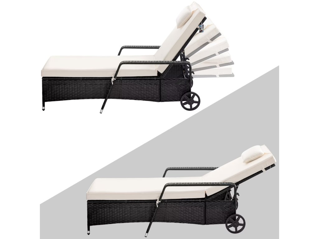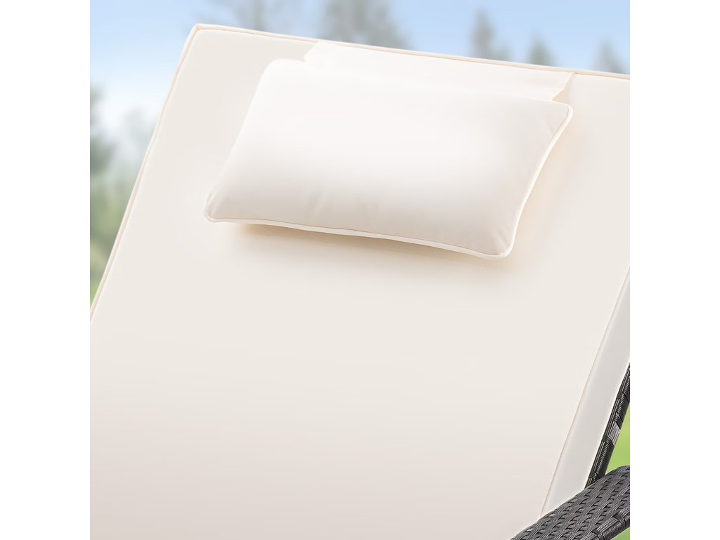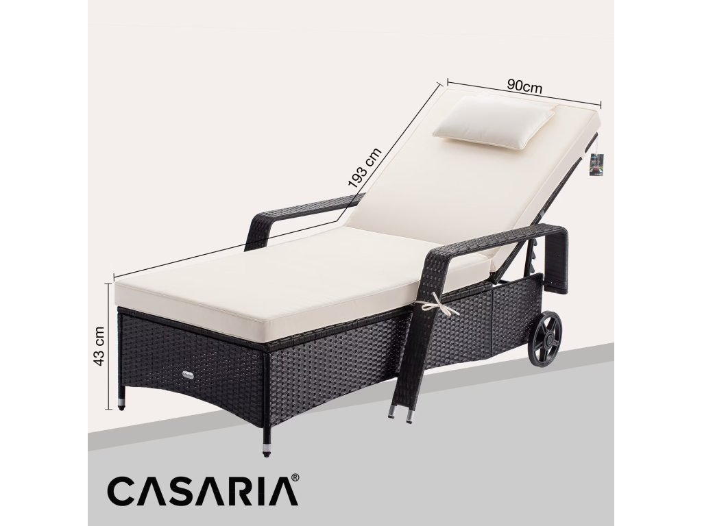 Pohodlné lehátko s extra hrubou 7 cm poduškou je ideálne do vašej záhrady, na terasu alebo balkón. Podušky sú vodoodpudivé a odolné voči UV žiareniu. Vďaka kolieskam s hladkým chodom záhradné lehátko ľahko prenesiete. Operadlo je nastaviteľné do 5 polôh, aby ste sa napríklad pri čítaní mohli ľahko nastaviť do dokonalej polohy ležania alebo sedu. Vankúš zaisťuje pohodlné držanie krku. Ručne tkaný polyratan a robustný oceľový rám s práškovým nástrekom sú odolné voči poveternostným vplyvom.