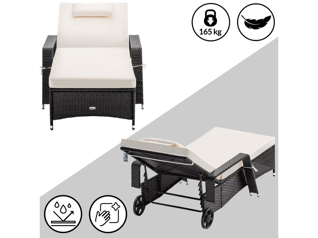 Luxusné polohovacie lehátko s kolieskom čierne - krémová poduška