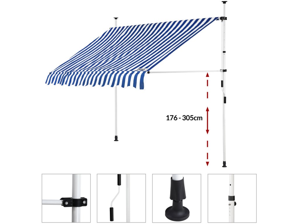Výškovo nastaviteľná upínacia markíza značky je vyrobená z prvotriedneho polyesteru s PU povrchovou úpravou. Vyznačuje sa odolnosťou voči vode, nečistotám, UV žiareniu a nepriaznivému počasiu. Slnečnú striešku možno jednoducho odstrániť z pevného oceľového rámu a pohodlne vyčistiť. Markíza efektívne chráni pred priamym slnečným žiarením a poskytuje dostatok tieňa. Vďaka flexibilným možnostiam nastavenia dokáže zakryť aj celé okná. Vysúvanie a zasúvanie markízy je komfortné vďaka extra dlhej kľuke, pričom uhol sklonu je možné individuálne prispôsobiť. Montáž je rýchla a nenáročná – výškovo nastaviteľný rám s upínacím mechanizmom zabezpečuje stabilitu a jednoduché upevnenie.