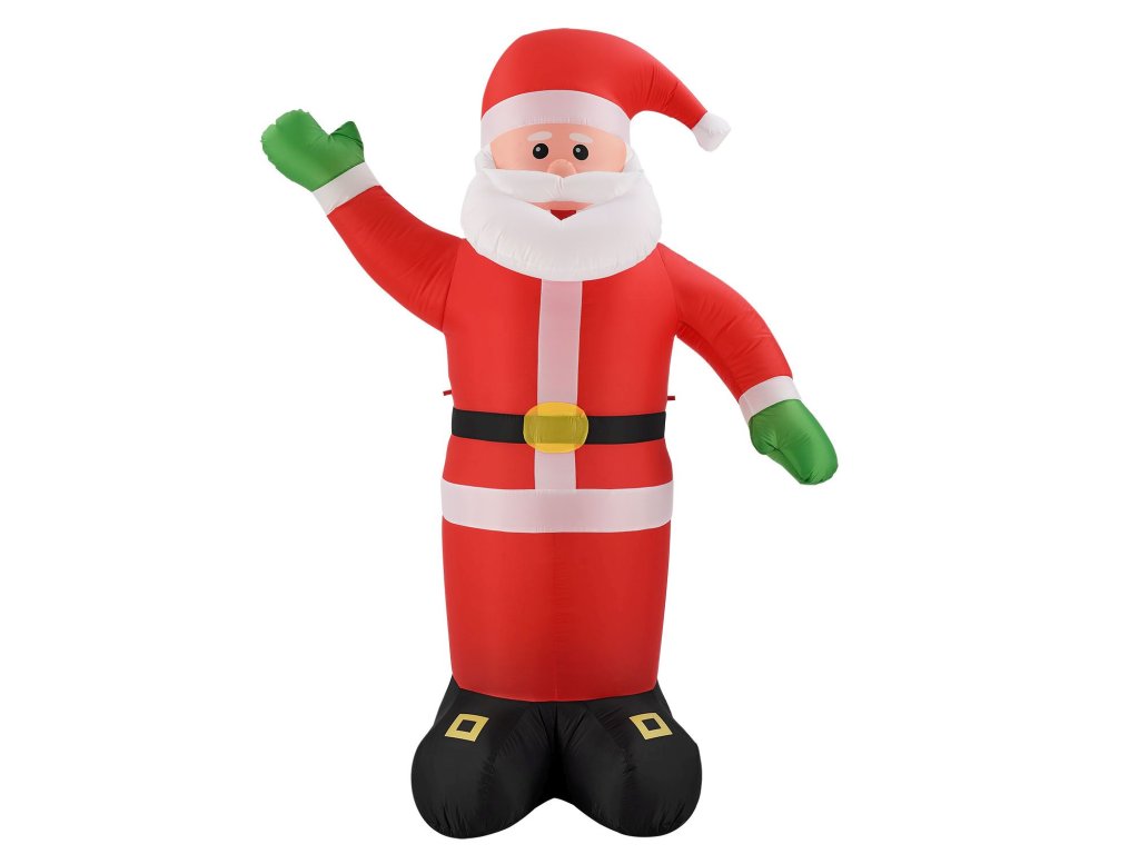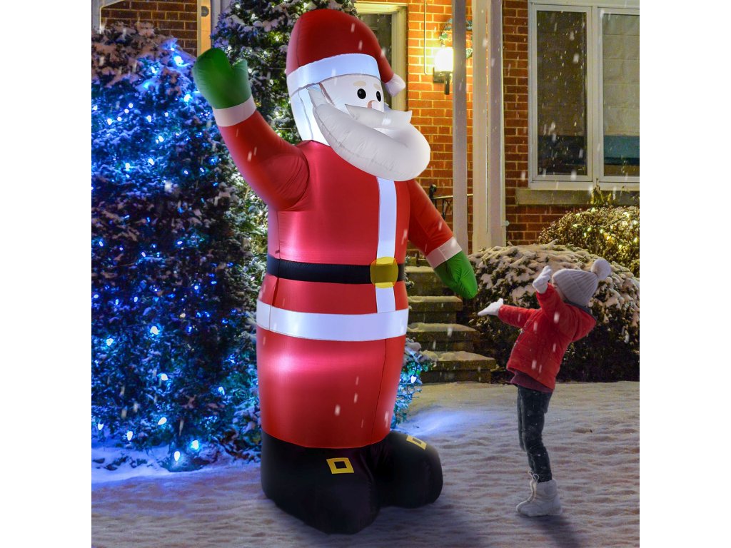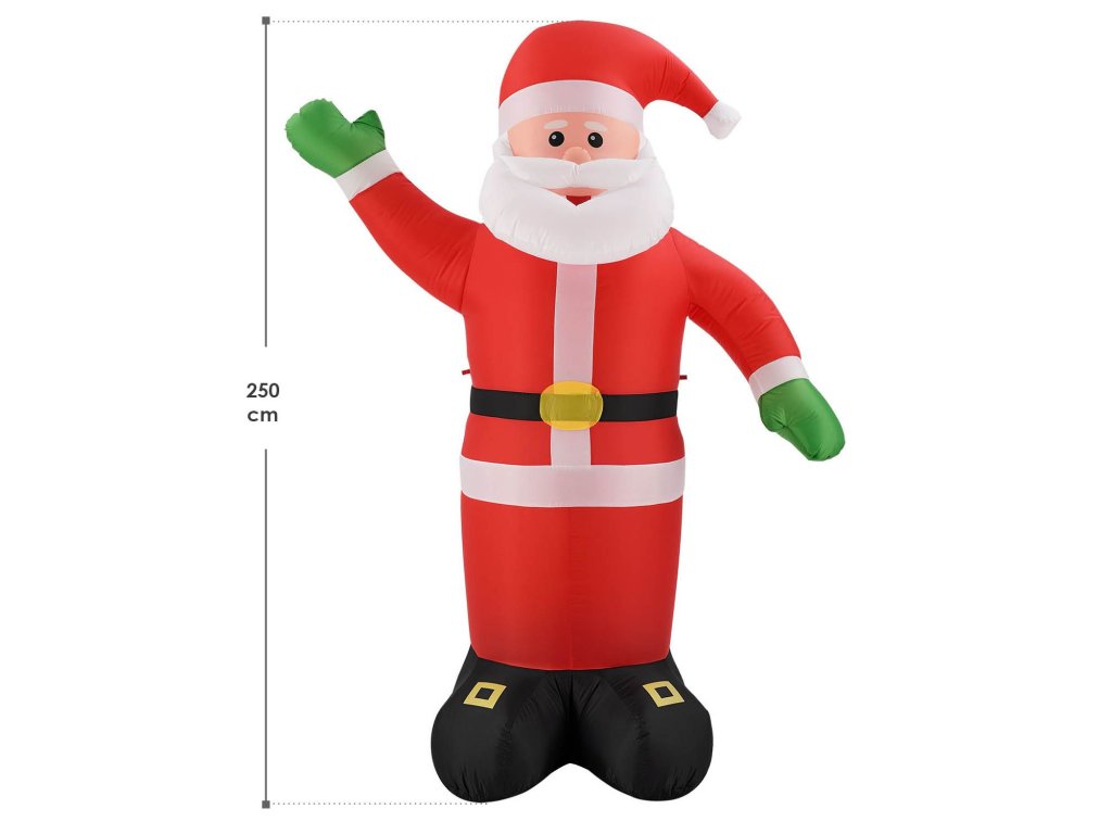 Vianoce môžu prísť - najlepšie s 250 cm vysokým XXL Mikulášom s integrovaným dúchadlom a LED osvetlením. Vďaka integrovanému reťazcu svetiel žiari najmä v tmavom prostredí. Nafukovacia vianočná figúrka je navyše vyrobená z vodoodpudivého a UV odolného polyesteru. Skvele sa preto hodí ako vianočná dekorácia do interiéru aj exteriéru. V Mikulášovi je reťaz svetiel s 18 LED diódami. Mikuláš je vybavený ventilátorom s nízkou hlučnosťou a sám sa nafúkne za pár minút. Energiu a náklady šetriace dúchadlo je napájané elektrickou energiou cez napájací zdroj s káblom dlhým 2 metre. Nafukovacia figúrka má na bokoch a chrbte očká pre stabilné držanie. Kotviace laná pevne ukotvíte do zeme pomocou 6 zemných hrotov. To zaisťuje stabilnú a vzpriamenú polohu.