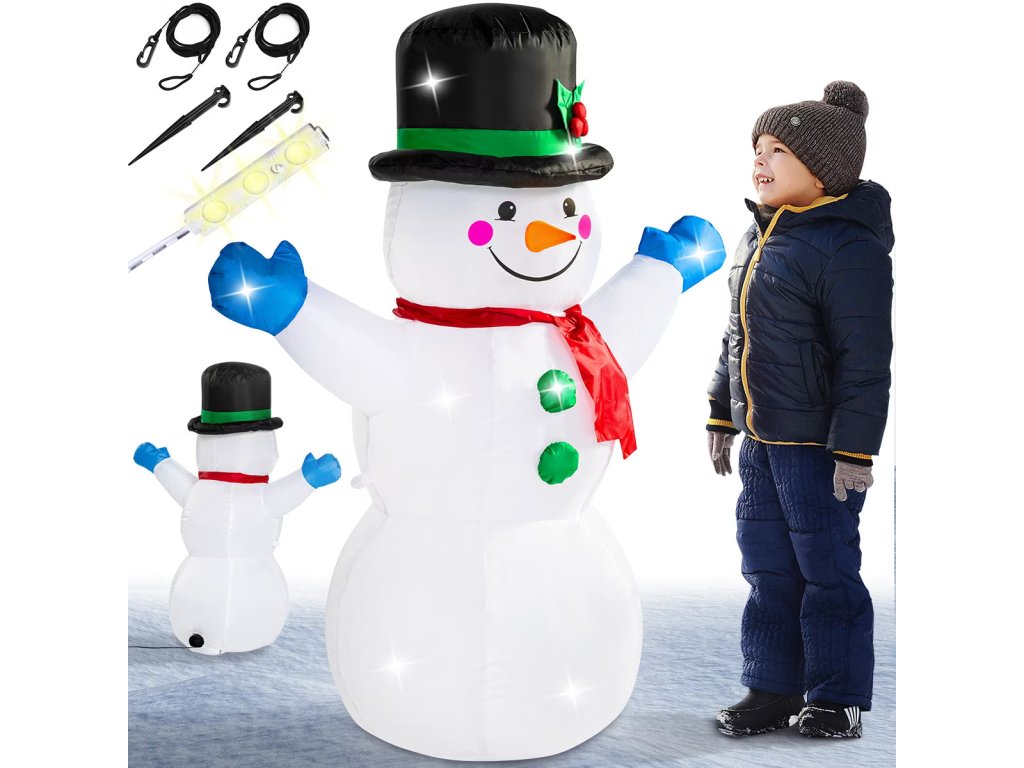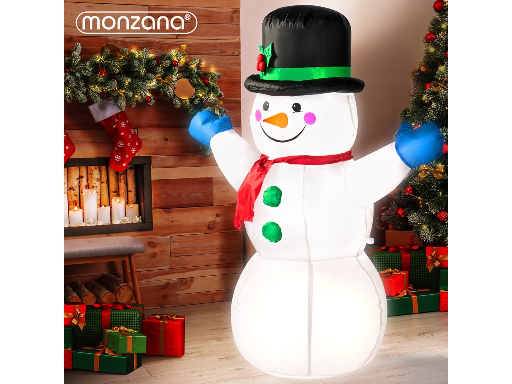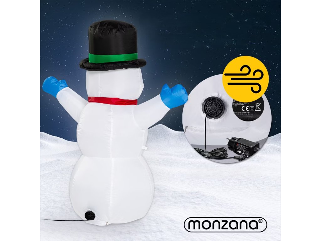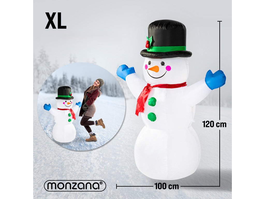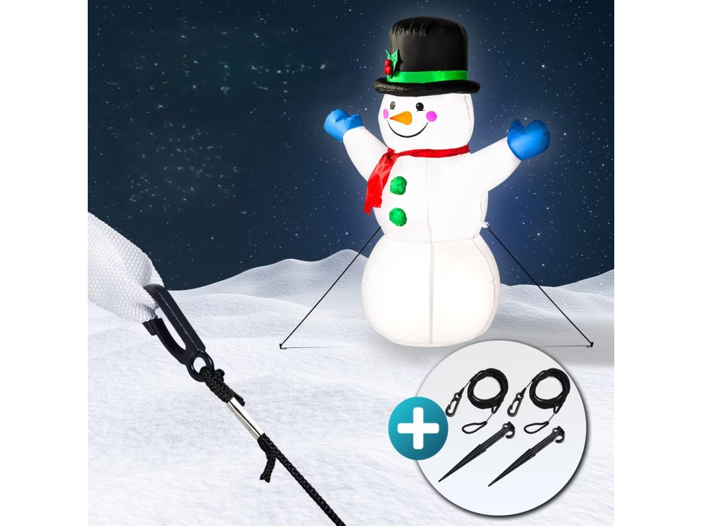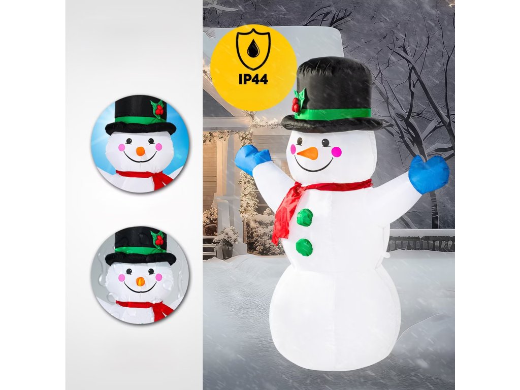 Dekoračný a nafukovací snehuliak je vhodný ako osvetlenie na vianočné obdobie. Veľký snehuliak má 3 LED diódy , ktoré ho rozsvietia. Snehuliak sa nafukuje pomocou integrovanej elektrickej pumpy. Je vhodný na vnútorné aj vonkajšie použitie.