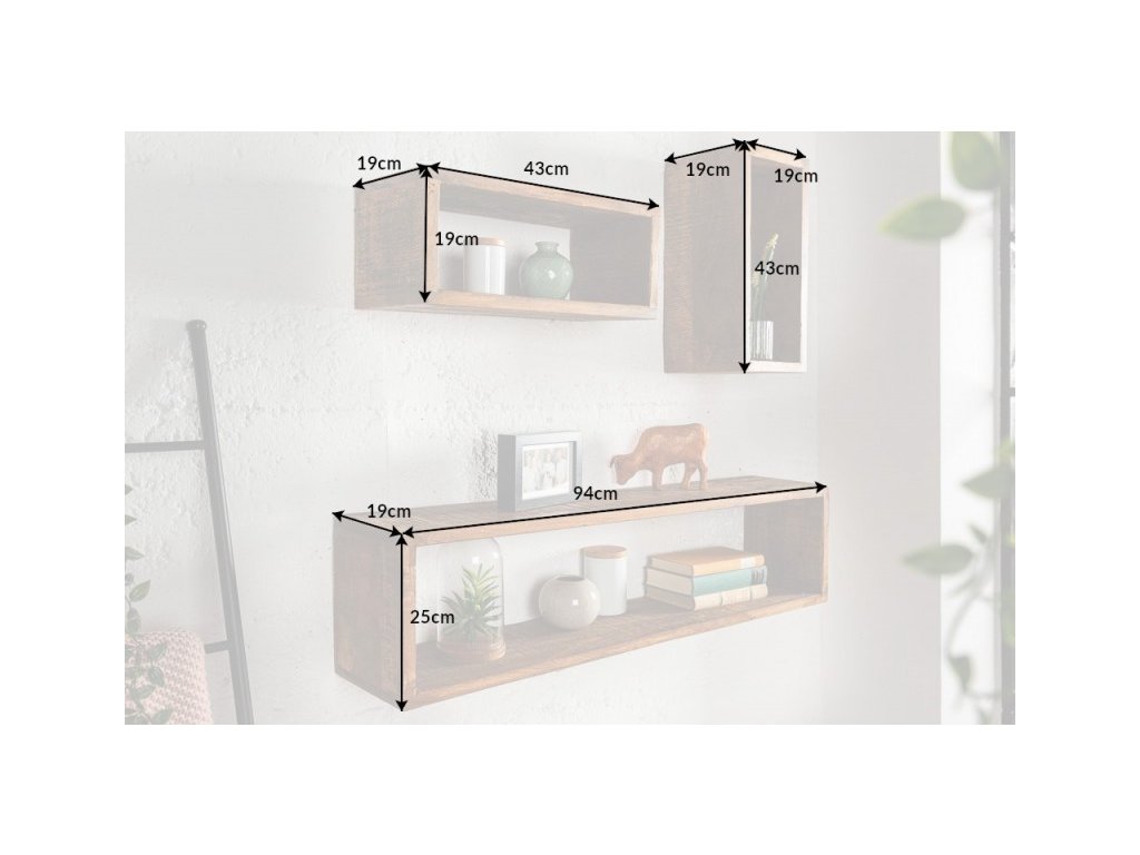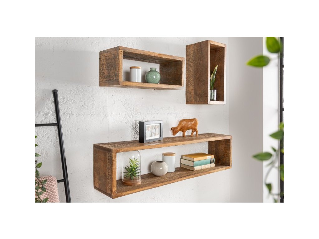 Nástenná polica Hemingway sada 3ks mango hnedá