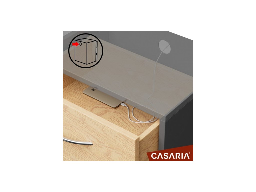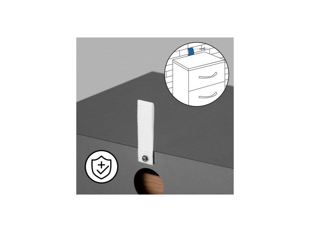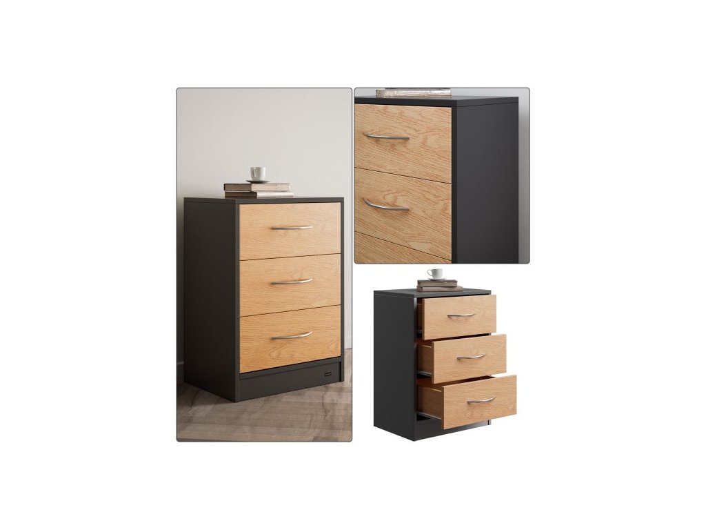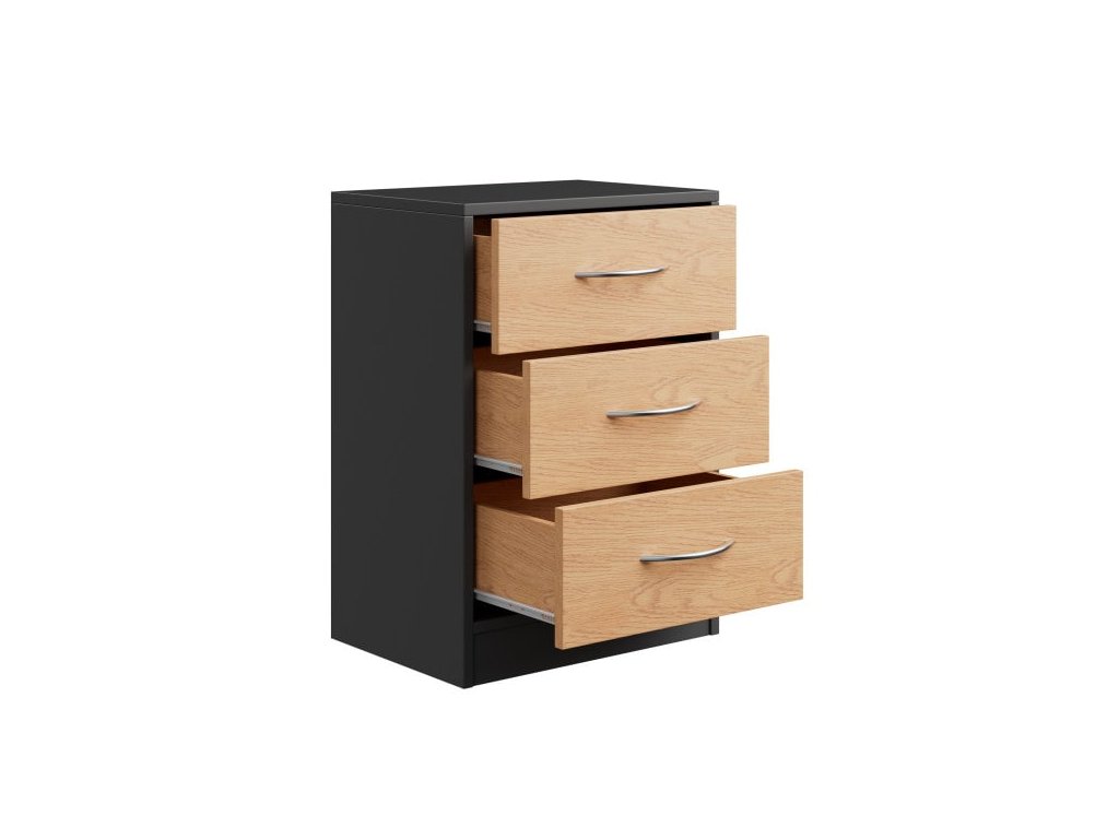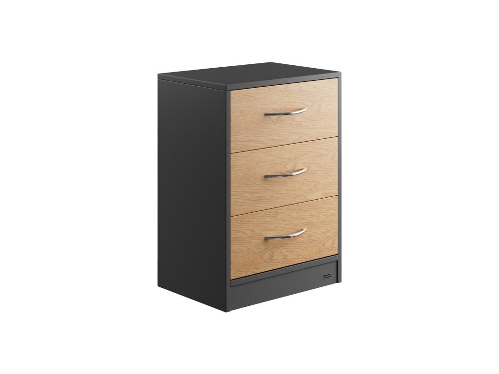 Elegantný nočný stolík Eloise perfektne zapadne do vášho interiéru. Tri zásuvky s hladkým chodom s chrómovými úchytkami, každá s objemom 5 litrov, poskytujú dostatok úložného priestoru. Na hornej poličke je dostatok miesta pre budík, knihu, nočnú lampu a mnoho ďalšieho. Pre väčšiu bezpečnosť môžete nočný stolík jednoducho pripevniť na stenu pomocou zámku na zadnej časti. Stolík s praktickými chráničmi podlahy je vyrobená z odolného MDF. Povrchy sa ľahko čistia vlhkou handričkou.