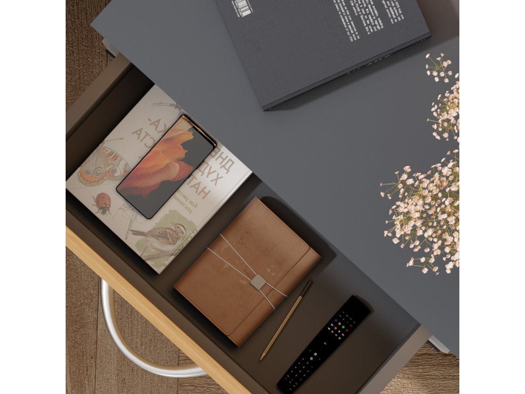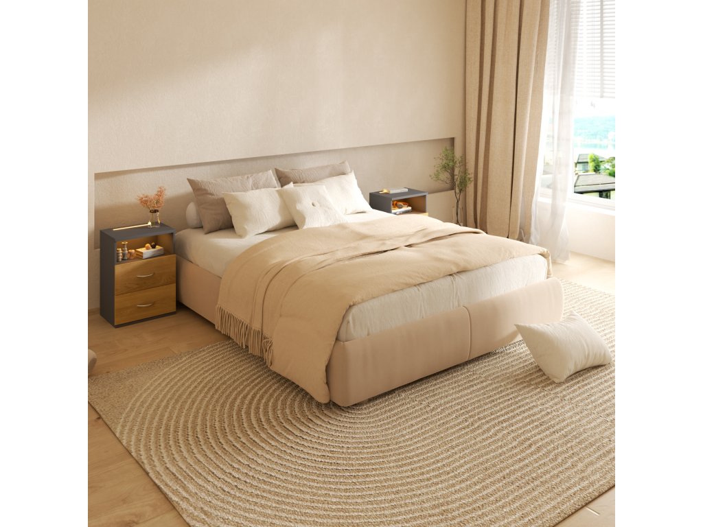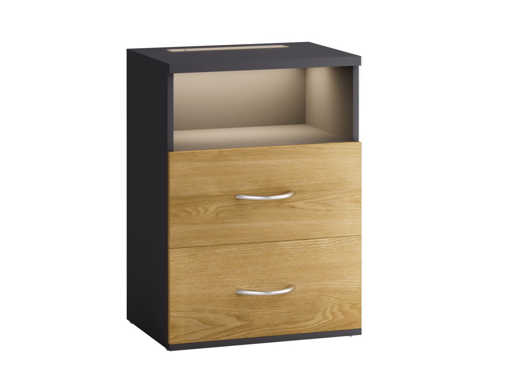 S pohodlnou výškou 55 cm je nočný stolík ideálnym doplnkom a ľahko sa k nemu dostanete z každej postele. Na zadnej strane stolíka sa nachádza praktická káblová priechodka. Súčasťou je aj konektor USB typu A. Integrované osvetlenie je odnímateľné a intenzitu svetla je možné postupne nastavovať a stmievať. Môžete si vybrať medzi studeným bielym alebo teplým bielym svetlom.
