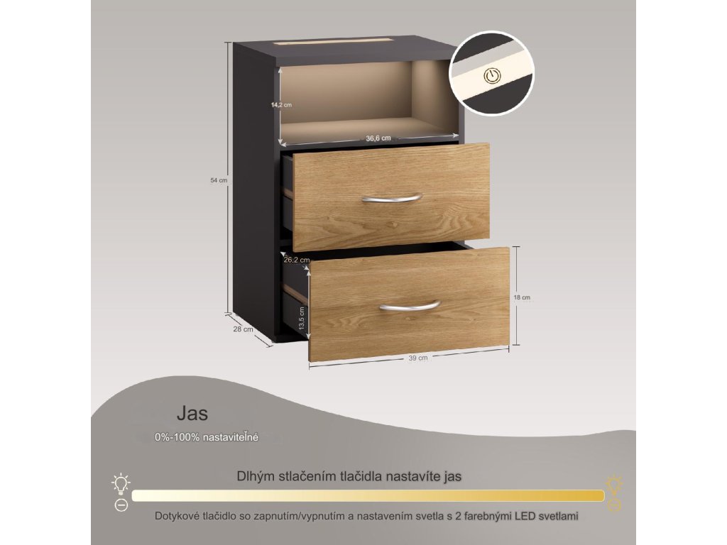 Elegantný nočný stolík s integrovaným LED osvetlením