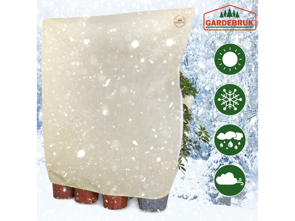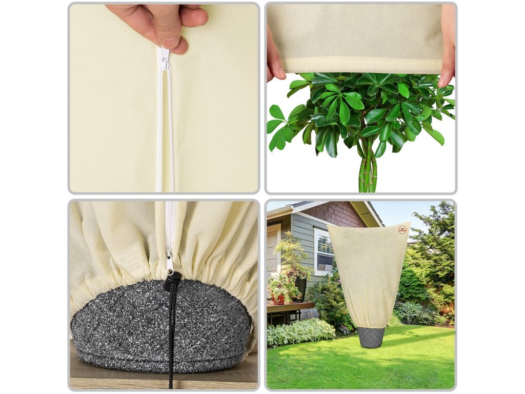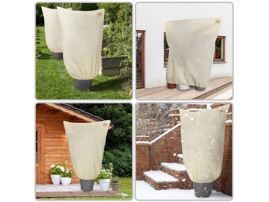 Ochranný kryt je ideálny na zakrytie mladých stromčekov a kríkov v chladnom období a na ich ochranu pred poškodením mrazom. Praktický zips na dlhej strane sa ľahko otvára a znižuje riziko odlamovania mladých výhonkov pri nasadzovaní. Sťahovacia šnúrka v spodnej časti umožňuje zatvorenie krytu, aby boli rastliny chránené pred vetrom aj zospodu.