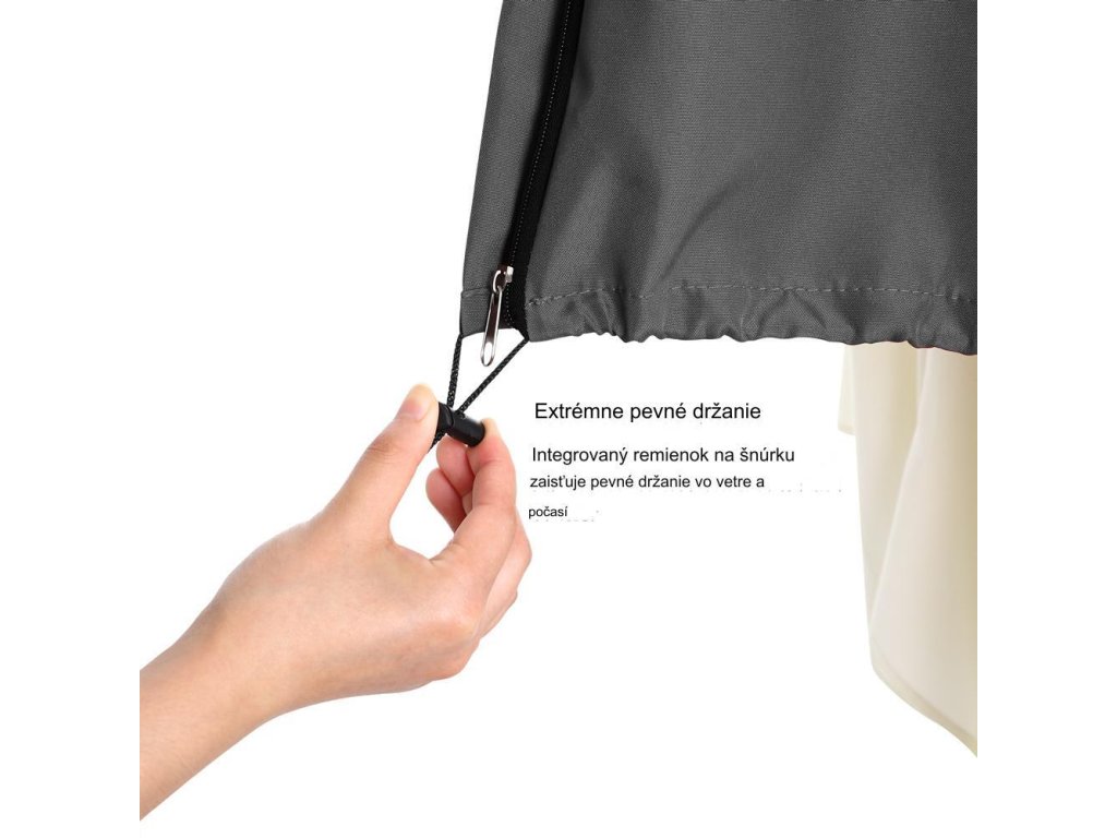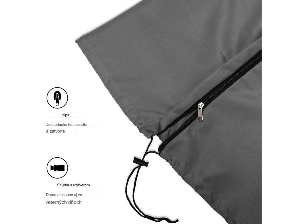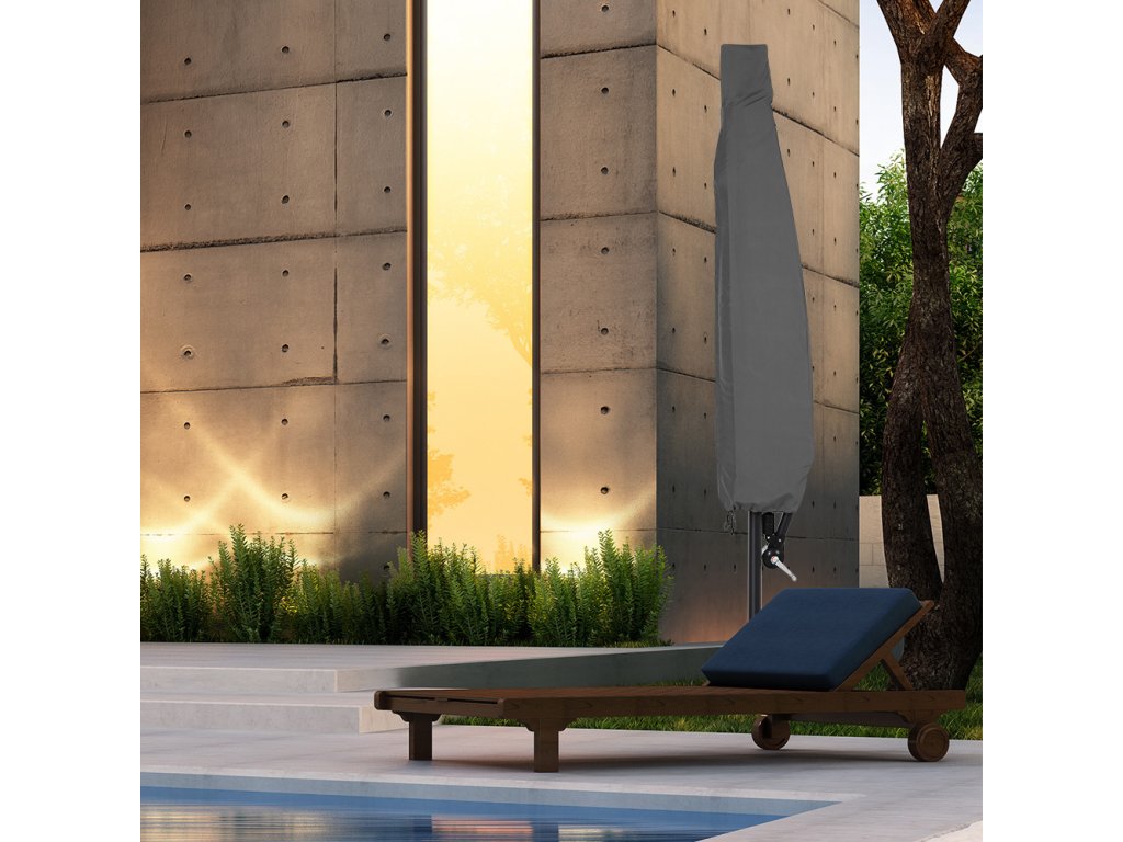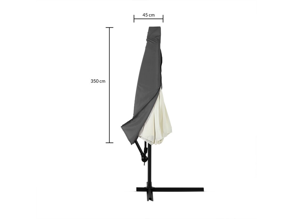 Ochranný kryt na zips vyrobený z polyesteru 160 g/m² ochráni váš slnečník pred vlhkosťou, špinou, mrazom a prachom. Štruktúra materiálu zaisťuje vysokú flexibilitu. V spodnej časti je upevniteľná šnúrka na uzavretie. Kryty sú vhodné pre bežné slnečníky s priemerom 3,5 m.