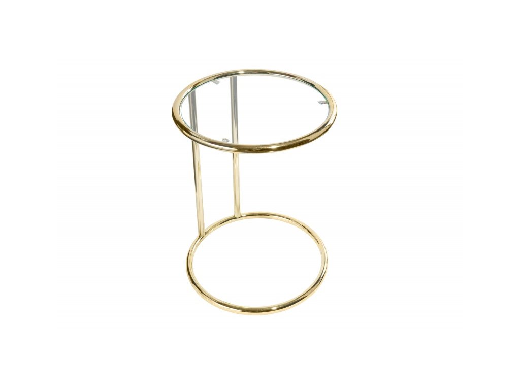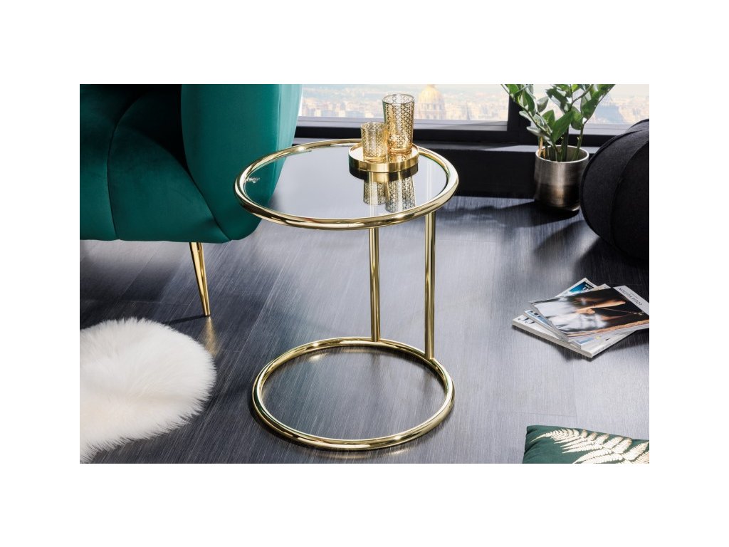 Odkladací stolík Art Deco upúta nadčasovým dizajnom a eleganciou. Kontrast kovovej konštrukcie v zlatej lesklej farbe a dosky z bezpečnostného priesvitného skla vynikne v každej modernej miestnosti. S priemerom 40cm poskytuje dostatok odkladacieho priestoru. Stolík si môžete pohodlne zasunúť ku pohovke alebo pod nohy. Tento prakticky stolík sa stane obľúbeným prvkom vo vašom interiéri.
