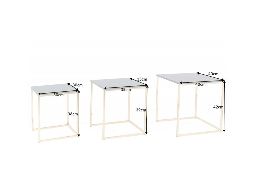 Stredný stôl: 35 cm x 39 cm x 35 cm (ŠxVxH)