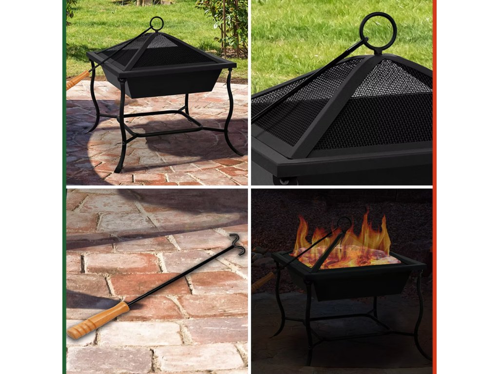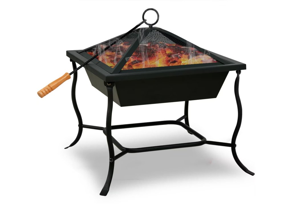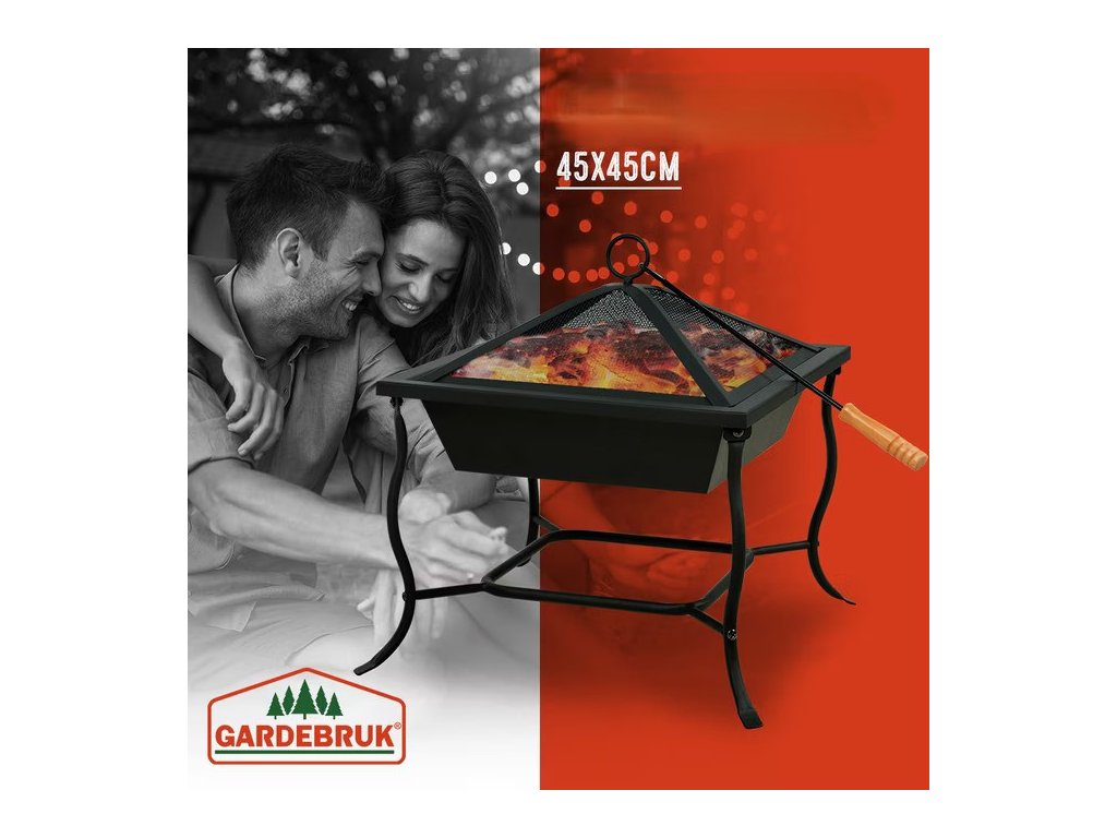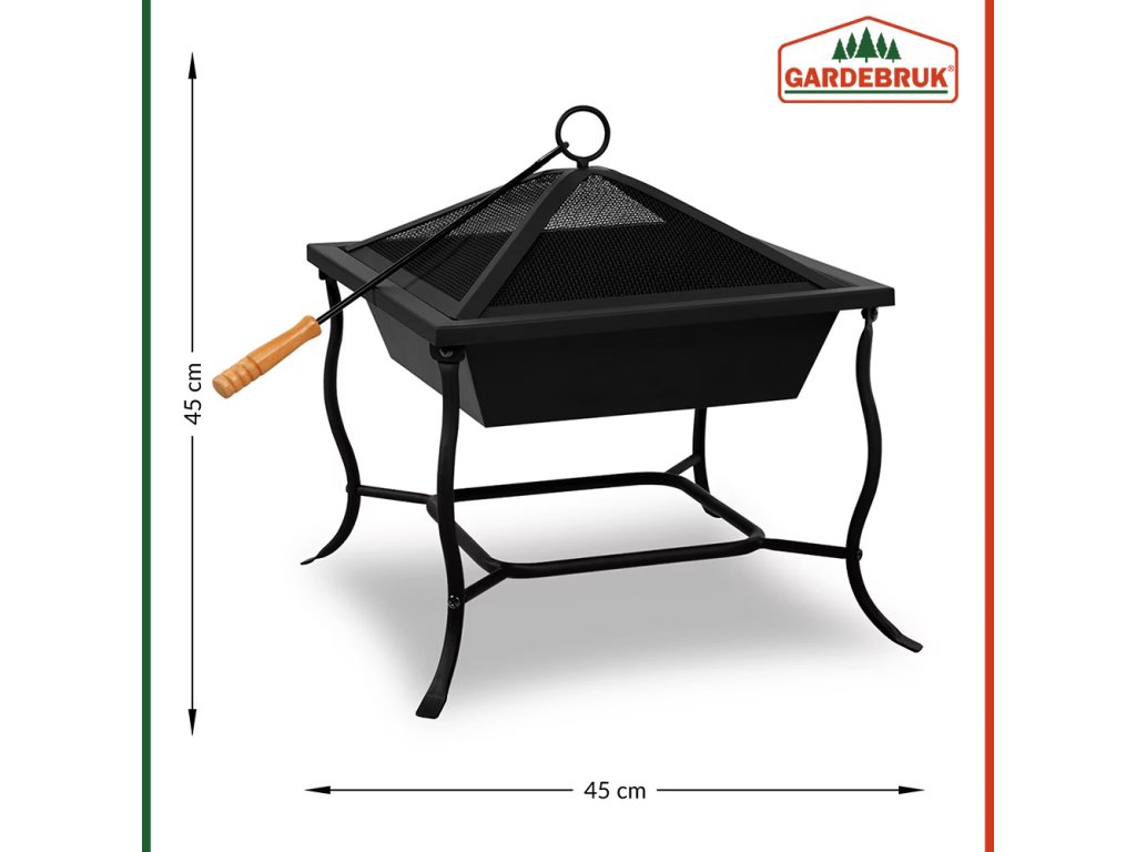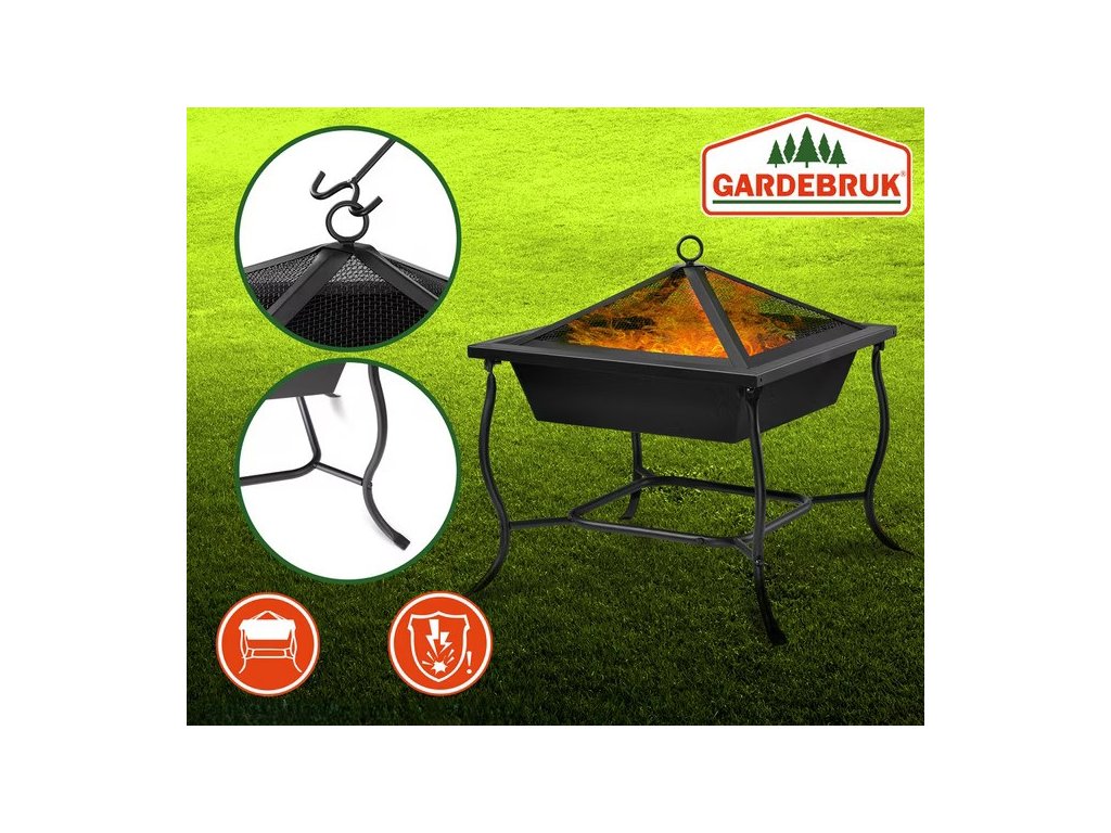 Či už v záhrade alebo na terase si s týmto ohniskom vychutnáte príjemné teplo a útulnú atmosféru. Moderný a elegantný dizajn záhradného ohniska upúta pozornosť každého. Vďaka priloženej ochrannej mriežke si môžete užívať plamene bez obáv z lietajúcich iskier. Praktický kutáč s rúčkou z pravého dreva je navyše súčasťou balenia. Rám z pevnej ocele, ošetrený práškovou povrchovou úpravou, zabezpečuje stabilitu ohniska, ktoré stojí pevne na štyroch nožičkách.