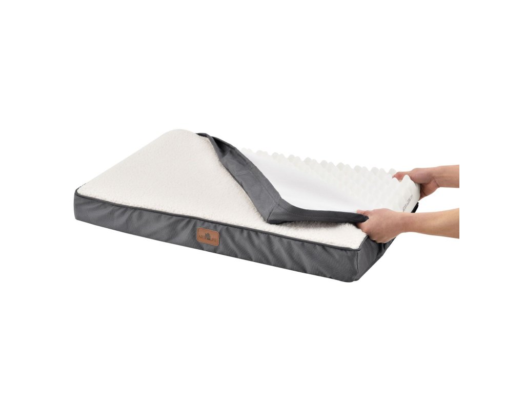 Pohodlný ortopedický pelech s rozmermi 92 x 69 cm je dokonalou alternatívou k bežnému pelechu pre psov. Vďaka 8cm hrubému jadru z peny s vysokou hustotou slúži hranatý pelech ako pohodlné miesto na ležanie a spánok pre stredne veľkých psov. Pelech je však ideálny aj ako útulná podložka v klietke alebo búde pre psa. Pelech je možné použiť aj pre mačky a iné domáce zvieratá. Útulný pelech má bočný zips. To vám umožní v prípade potreby ľahko vybrať matrac alebo odstrániť poťah na každodenné čistenie. Vonkajší poťah sa dá ľahko prať ručne alebo v práčke na šetrnom cykle pri nízkych teplotách. Spodná strana a boky poťahu sú vyrobené z odolného polyesteru. Materiál dlhodobo odoláva každodennému používaniu. Vďaka jednoduchej farebnej schéme v béžovej a šedej sa pelech hodí do každého prostredia.