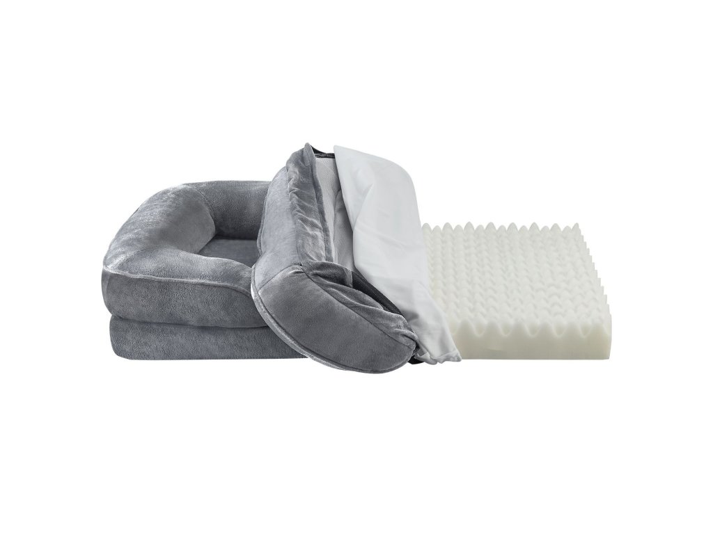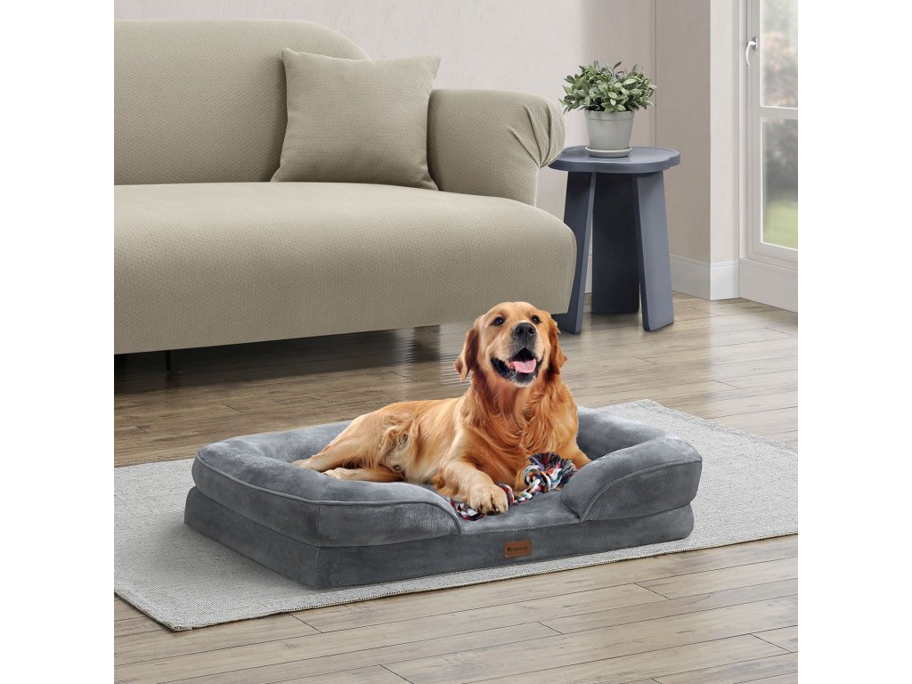 Pohodlný pelech pre psa Sheena L 98x70x18 cm v šedej farbe je ideálnym miestom na spanie pre vášho miláčika. Je ideálny pre každodenné použitie v interiéri. Na vnútornej ploche 65x50 cm majú stredne veľké psy do 34 kg dostatok miesta na pohodlné ležanie. Matrac sa skladá z vysoko kvalitnej peny a ergonomicky sa prispôsobí telu. Flanelová tkanina je príjemná na dotyk, poťah je plyšový a hrejivý. Pelech zaujme svojim elegantným vzhľadom a odolnosťou. Vďaka protišmykovej látkovej základni pelech bezpečne priľne k podlahe - užitočné na hladkých povrchoch, ako sú dlaždice a parkety. Poťah je odzipsovateľný a prateľný pri nízkych teplotách.