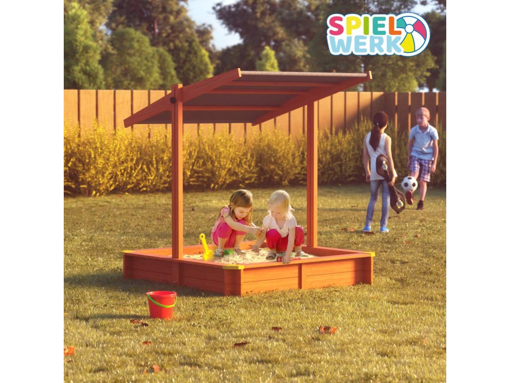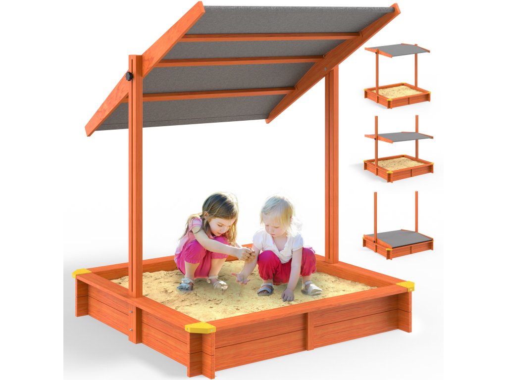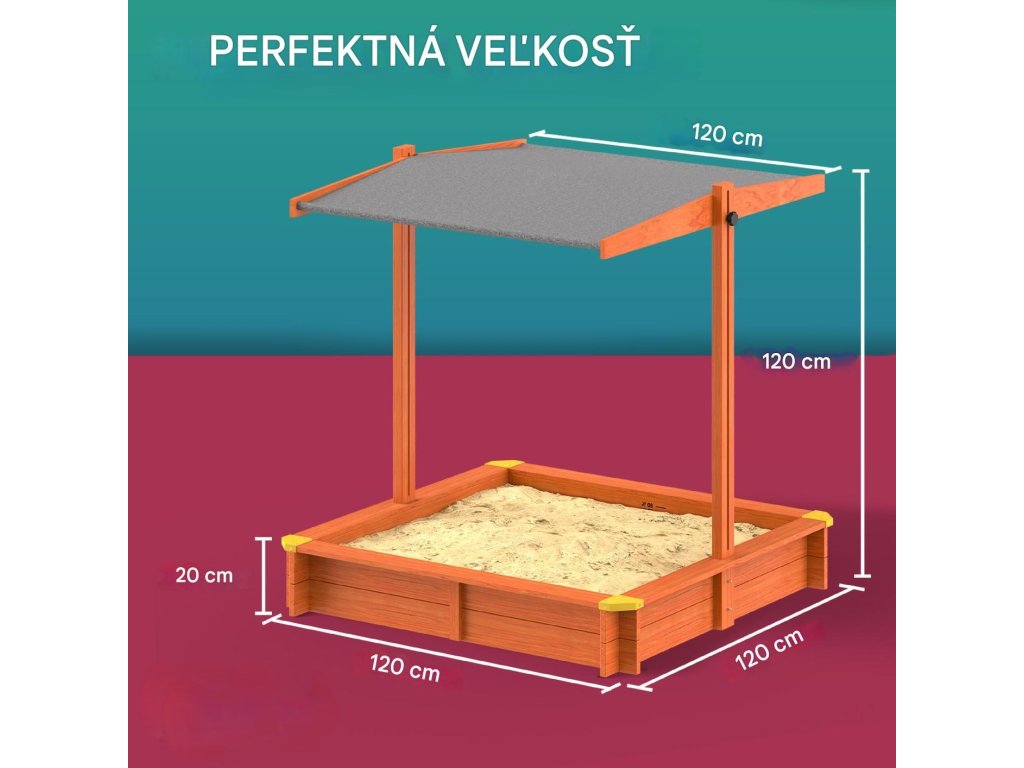 Pieskovisko je vyrobené z masívneho smrekového dreva ošetreného ekologickou lazúrou. Strieška je výškovo nastaviteľná, otočná, ponúka ochranu UV 50+ a tiež chráni pred miernym mrholením. Podlahová rohož izoluje podlahu a chráni piesok pred nečistotami. Na ochranu pred vlhkosťou alebo v noci sa strieška dá spustiť pomocou vodiacej lišty pri uvoľnení skrutky. Zaoblené hrany s kvalitnými plastovými rohmi robia pieskovisko ešte bezpečnejšie pre deti. Vypálená stupnica ukazuje optimálnu úroveň naplnenia pieskom v %.