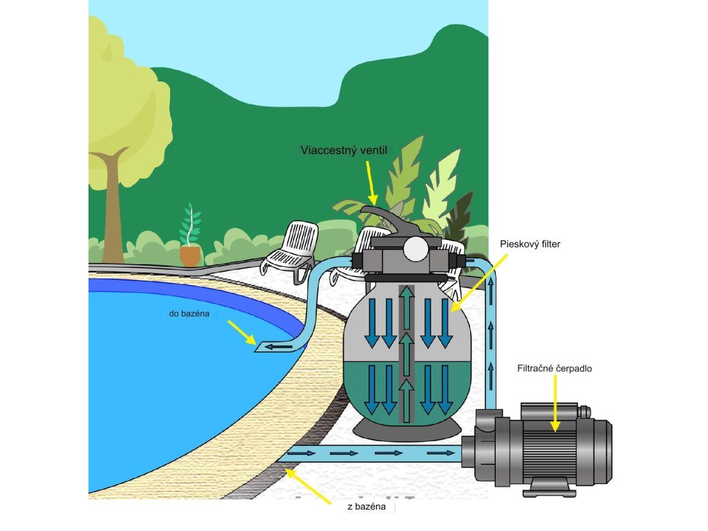 - 1 x pieskový filtračný systém vrátane čerpadla a príslušenstva