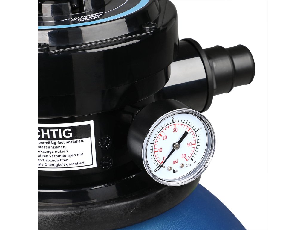 Pieskový filtračný systém SF96K je vybavený rozsiahlym príslušenstvom. Vrchný 7-cestný ventil zaisťuje perfektnú manipuláciu. Pieskový filtračný systém je vhodný aj pre bazény so slanou vodou. Náš pieskový filtračný systém má veľký objem nádrže cca 25 litrov. Filtračnú nádrž môžete naplniť až 20 kg filtračného piesku.