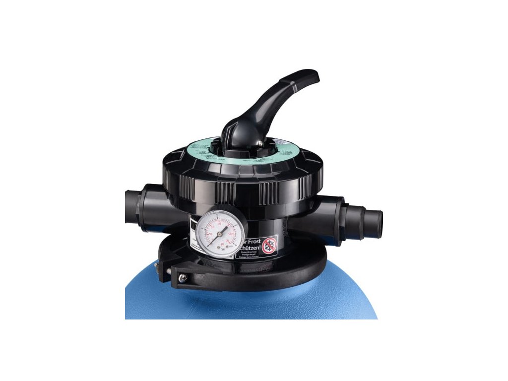 Pieskový filtračný systém vybavený rozsiahlym príslušenstvom. Vrchný 7-cestný ventil zaisťuje perfektnú manipuláciu. Pieskový filtračný systém je vhodný aj pre bazény so slanou vodou.