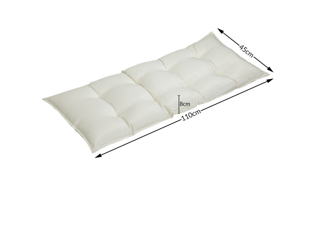 Pohodlné podúšky na lavice sú vyrobené z kvalitného odolného polyesteru, sú vodoodpudive a preto sú ideálne na dlhodobé používanie vonku alebo v interiéri. Hrúbka čalúnenia 8 cm zaisťujú dokonalý komfort sedenia. Priedušnosť podporuje výplň membrány z dutého vlákna. Visko efekt spôsobí, že sa vankúš lavice vráti do pôvodného tvaru, keď sa postavíte. Podúška má optimálne rozmery preto sa hodí na všetky bežné 2-miestne lavičky. Vďaka popruhom pripevneným na boku sa dá ľahko zabrániť nepríjemnému šmýkaniu poťahu.