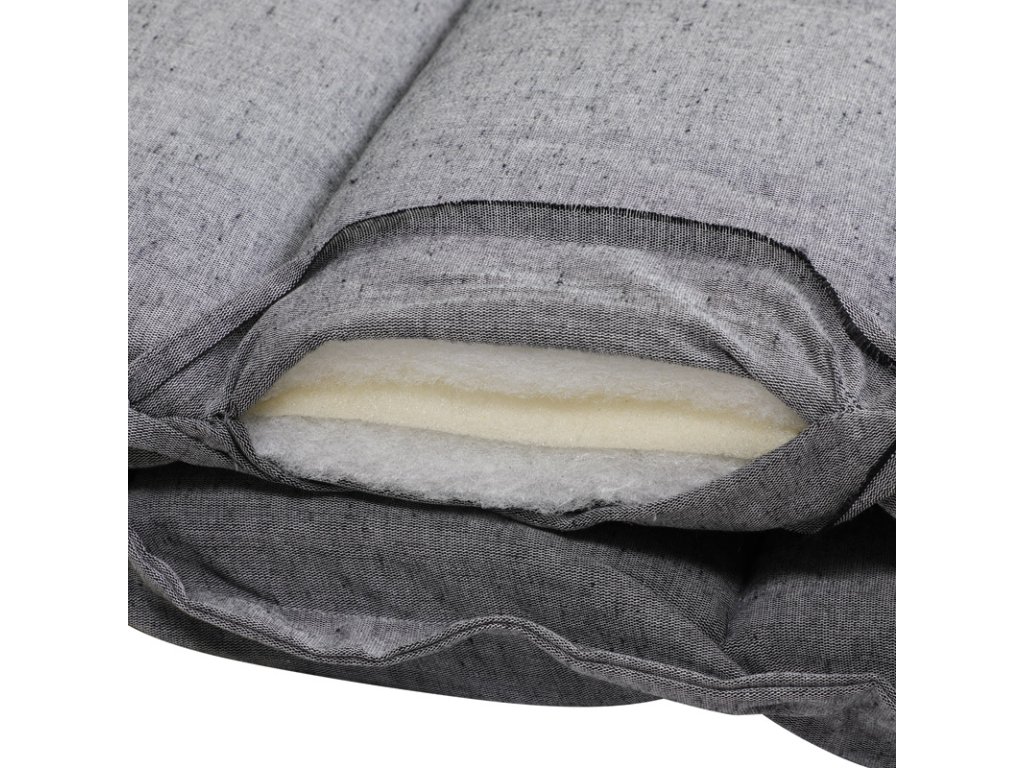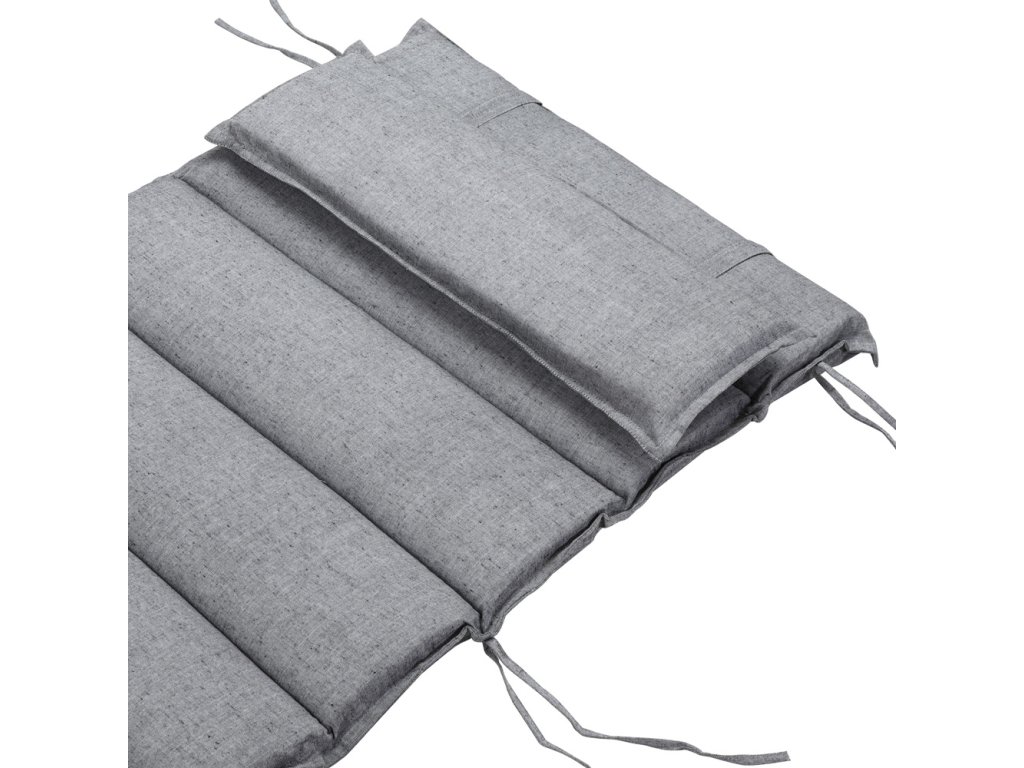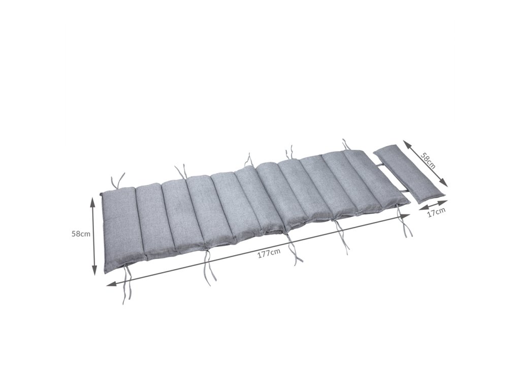 Poduška je vyrobené z kvalitného odolného polyesteru a je ideálna na dlhodobé používanie vonku alebo vnútri. Špeciálny 5-vrstvový sendvičový systém a hrúbka polstrovania 7 cm zaisťujú dokonalé pohodlie pri ležaní. Vďaka popruhom na bokoch možno ľahko zabrániť nepríjemnému šmýkaniu podušky. Tieto podušky sú vodoodpudivé, takže náhodne rozliate tekutiny možno utrieť bez zanechania zvyškov.