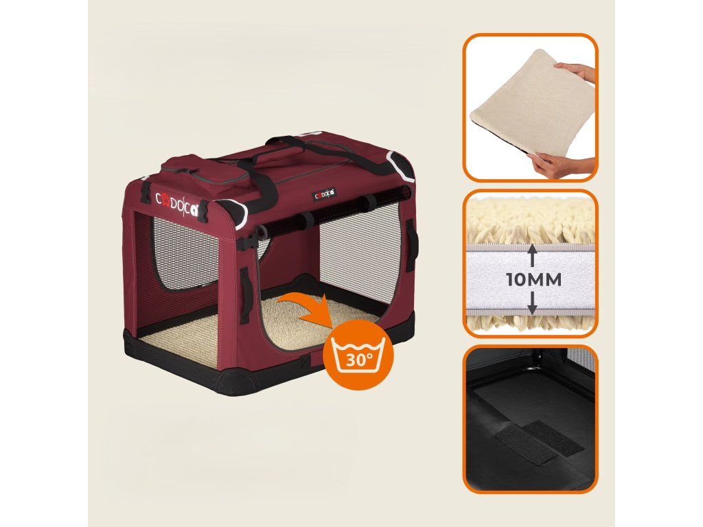 Vnútorná časť tašky je vybavená mäkkou dekou, ktorá poskytuje vášmu miláčikovi pohodlné a útulné miesto na oddych. Veľké sieťované panely na všetkých štyroch stranách zabezpečujú dostatočné vetranie a prívod vzduchu. Horné, predné a bočné otvory so zipsami umožňujú jednoduchý prístup dovnútra i von. Dve priestranné vrecká sú ideálne na uskladnenie maškŕt a hračiek počas výletov k veterinárovi alebo na dovolenku. Vďaka skladacej oceľovej konštrukcii je tašku možné rýchlo zložiť a rozložiť, čo uľahčuje jej uskladnenie a šetrí miesto. Taška je vyrobená z odolného materiálu 600D Oxford, ktorý je ľahko udržiavateľný. Deku so suchým zipsom možno jednoducho odstrániť a prať pri 30°C. Vďaka kvalitnému spracovaniu Vám a Vášmu štvornohému priateľovi táto taška poskytne dlhodobé potešenie.