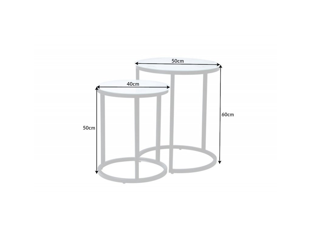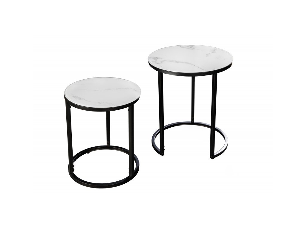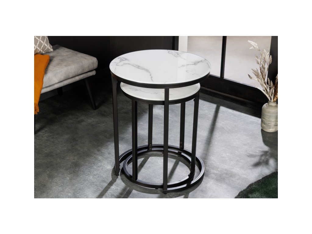 Príručný stolík okrúhly Elegance sada 2 ks mramorový vzhľad biely, čierny rám