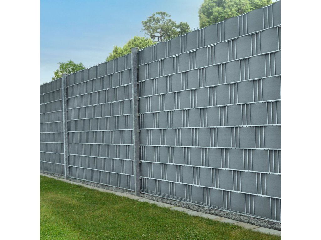 Naša sada 4 pásov na ochranu súkromia v svetlosivej farbe pre jedno tyčové alebo dvoj tyčové ploty ponúka ochranu súkromia a taktiež chráni pred slnkom a vetrom. Rôzne farby je možné optimálne kombinovať a vytvoriť tak individuálny dizajn. Plotový panel môžete jednoducho upevniť pomocou našich priložených sponiek. Naša odolná a trváca PVC plotová fólia ideálne chráni váš balkón, záhradu alebo terasu pred slnkom, vetrom a chráni Vaše súkromie. Výška pasov je 19 cm vďaka čomu sú vhodné pre bežné ploty. Naše 35 metrov dlhé PVC pásy bez problémov odolávajú teplotám od -30 ° C do + 70 ° C. aj pri najsilnejšom UV žiarení si odolný materiál zachováva svoj tvar a farbu. PVC pásy sú jednoducho umyvateľné vodnou hadicou a v prípade potreby jemnou mydlovou vodou.