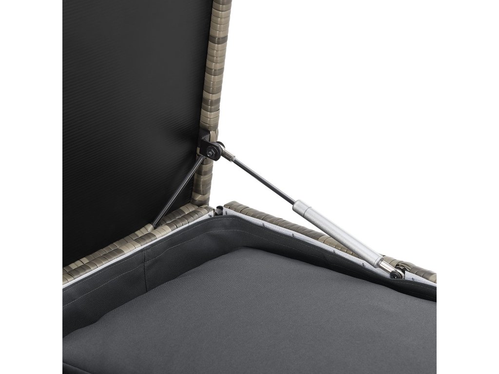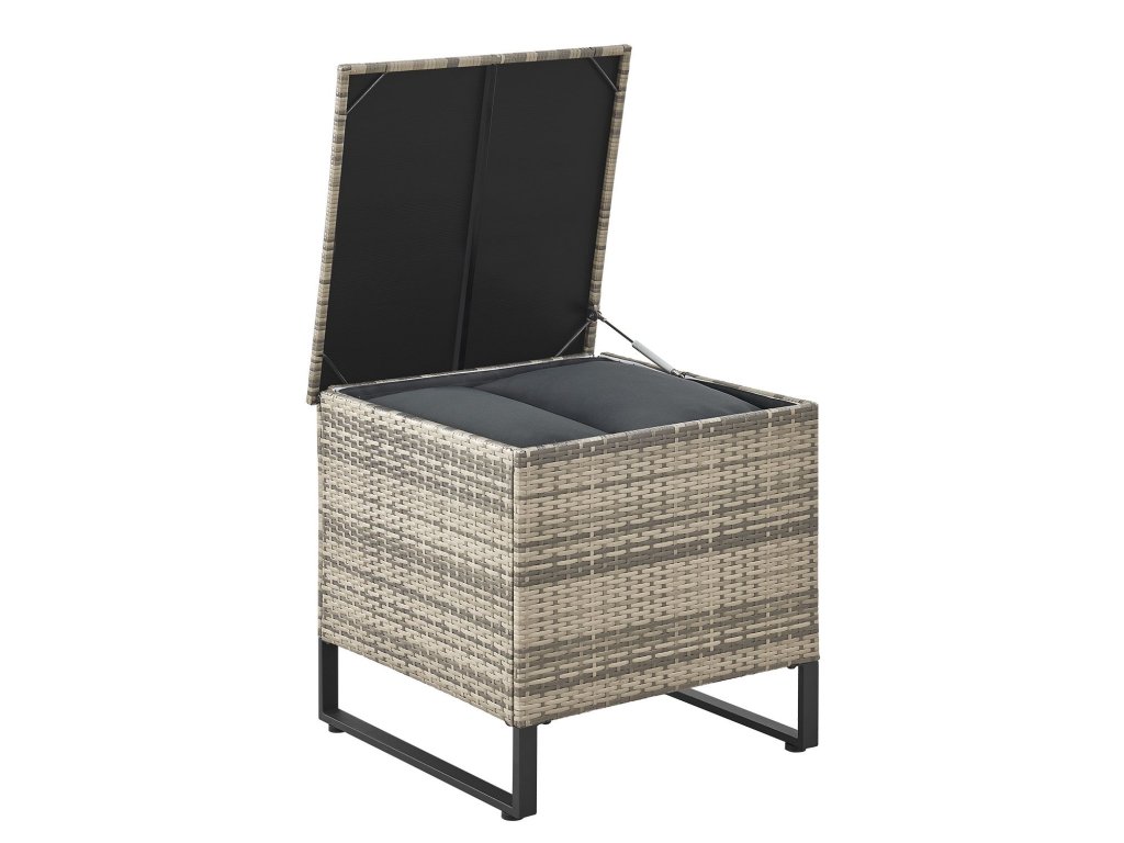 Zostava obsahuje pohodlné podušky, ktoré sú vyrobené z odolného polyesteru s mäkkou výplňou pre maximálny komfort. Úložný box na podušky bez problémov zapadne do kombinácie sedenia a ponúka dostatok úložného priestoru. Zároveň sa dá využiť ako praktický odkladací stolík.