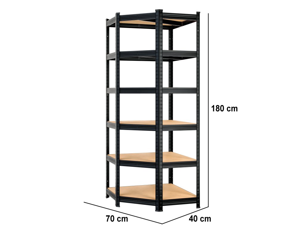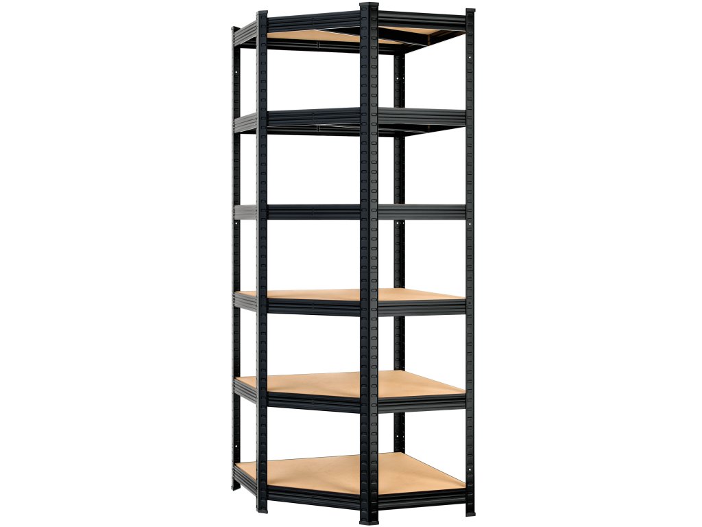 Rohový 6-policový regál - čierny